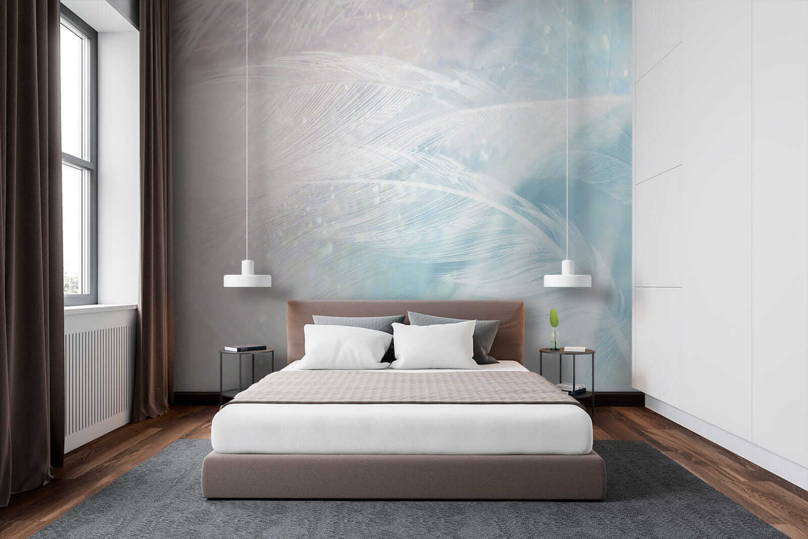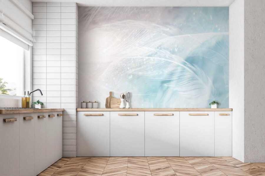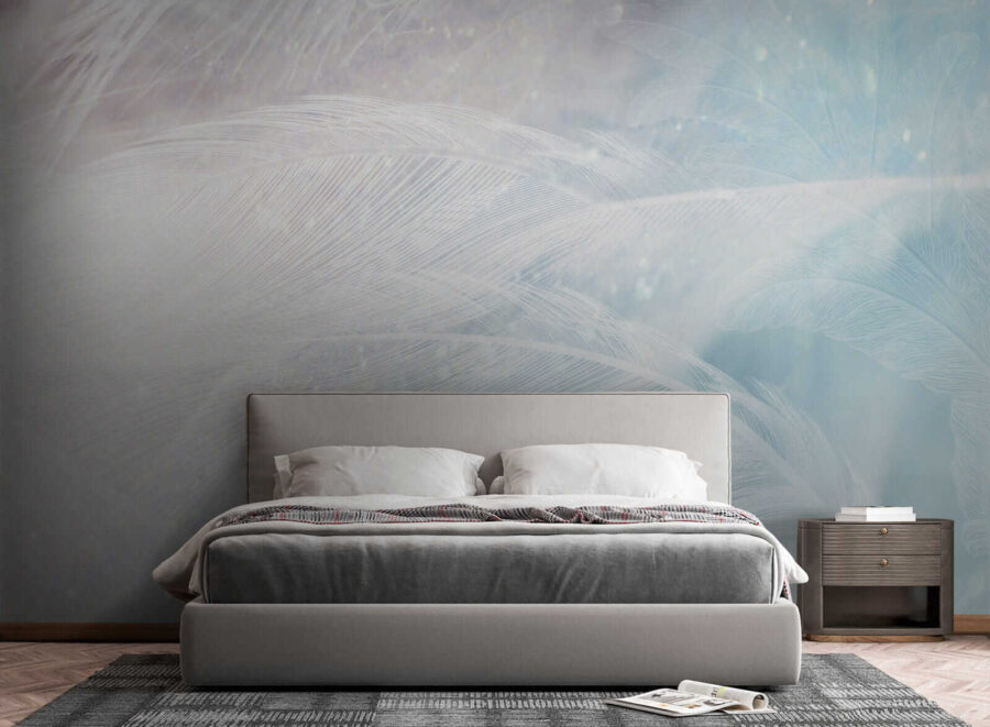 Of je nu op zoek bent naar een dromerige slaapkamer of een rustig hoekje in je kantoor, deze muurschildering past er perfect bij en voegt een vleugje aquarel schoonheid en een heleboel rust toe. Het is bijna alsof je elke keer dat je de kamer binnenstapt, wordt omarmd door de natuur. De lichte blauwtinten en gezonde veren details zorgen ervoor dat alles een beetje zachter aanvoelt, een beetje meer ontspannen. Geloof me, je muren zullen je er dankbaar voor zijn!