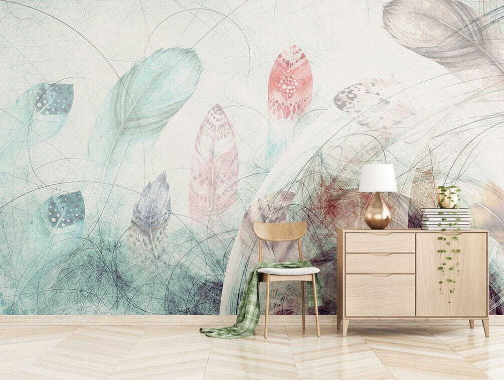 Stel je voor dat je deze dromerige muurschildering “Delicate feathers floating in breeze” in je kamer hebt! Het is alsof je op een wolk loopt… zacht, piekerig en o zo kalmerend. Perfect voor een kinderkamer, vooral als ze van zachte, rustgevende sferen houden – deze muurschildering fluistert bijna vrede.