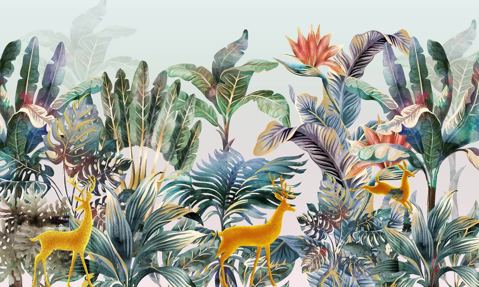 Tover je kamer om in een levendige jungle met deze geweldige muurschildering met een levendige groep planten en speelse dieren. Stel je voor dat je je kamer binnenstapt en de tropische lucht voelt stromen – of misschien gewoon een gevoel van rust. Het weelderige groen en de vrolijke diertjes nodigen een beetje natuur uit binnenshuis, waardoor elke dag aanvoelt als een mini-vakantie. Het is alsof je een geheime tuin aan je muur hebt, perfect voor die dagen waarop je even wilt ontsnappen. Deze muurschildering fleurt niet alleen je ruimte op, maar zorgt ook voor een glimlach en praatjes over de schoonheid van de natuur. Vooruit, laat je muren het woord doen.