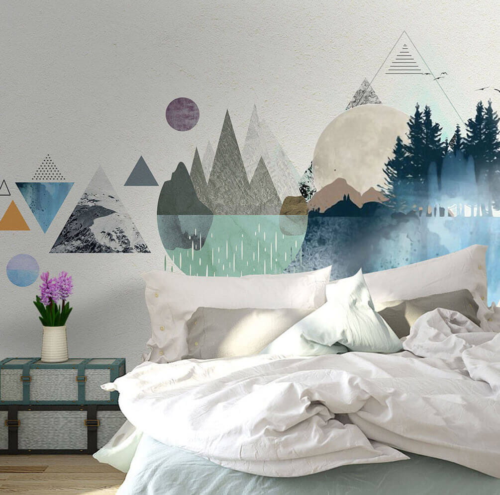 Verander elke kamer in een serene toevluchtsoord met de muurschildering ‘Water en bomen in een landschap’. Stel je voor dat je een ruimte binnenstapt die aanvoelt als een rustig bosretraite – zonder de insecten natuurlijk! Dit prachtige ontwerp combineert zachte waterverfkleuren en geometrische vormen, waardoor een achtergrond ontstaat die net zo rustgevend is als een kabbelend beekje.