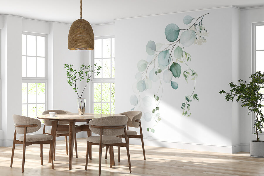 Stel je voor dat je een ruimte binnenstapt waar de natuur zachtjes in je oor fluistert. Deze muurschildering met delicaat aquarelgroen is als een verademing voor elke kamer. De zachte groene en witte tinten kunnen de sfeer direct verlichten, waardoor zelfs het gezelligste hoekje wat opener en uitnodigender aanvoelt. Het is perfect voor muren die een oppepper nodig hebben. Stel je voor dat je thee drinkt terwijl het zonlicht naar binnen stroomt en speelse schaduwen werpt van die bladmotieven op je vloer. Het is alsof je een stukje van het buitenleven naar binnen haalt, zonder insecten natuurlijk, en wie wil dat nou niet? Deze muurschildering is perfect voor een woonkamer of een leeshoek en voegt moeiteloos een vleugje elegantie en sereniteit toe. Een subtiele herinnering dat de natuur altijd binnen handbereik is.