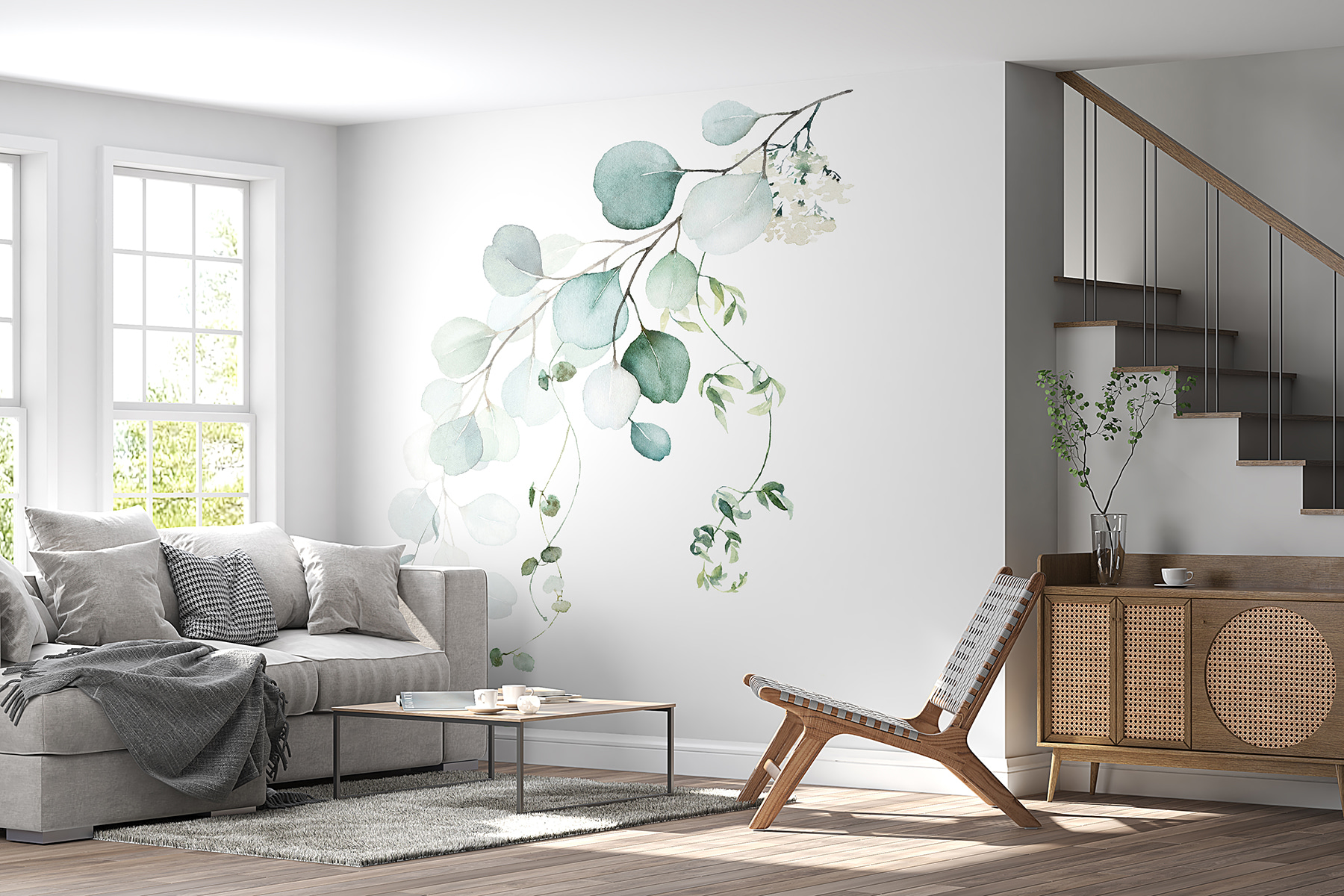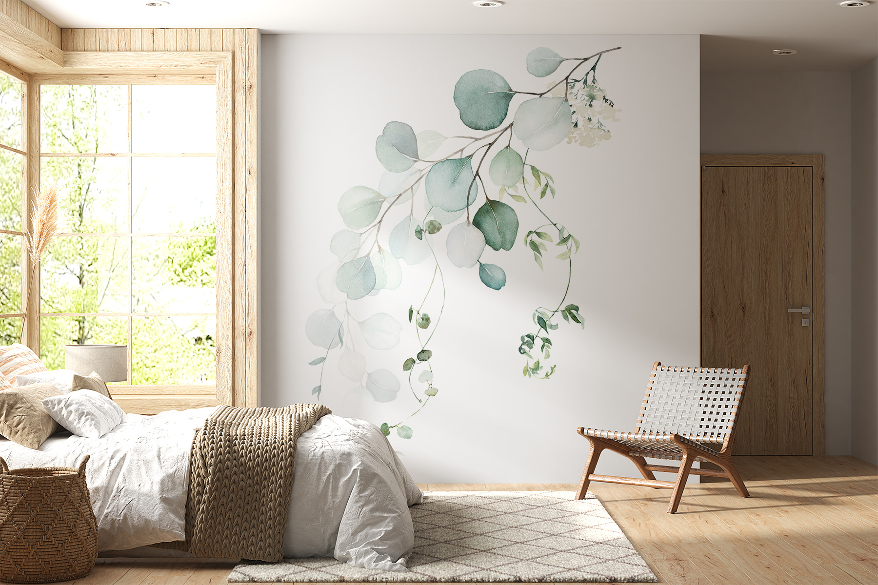 Stel je voor dat je een ruimte binnenstapt waar de natuur zachtjes in je oor fluistert. Deze muurschildering met delicaat aquarelgroen is als een verademing voor elke kamer. De zachte groene en witte tinten kunnen de sfeer direct verlichten, waardoor zelfs het gezelligste hoekje wat opener en uitnodigender aanvoelt. Het is perfect voor muren die een oppepper nodig hebben. Stel je voor dat je thee drinkt terwijl het zonlicht naar binnen stroomt en speelse schaduwen werpt van die bladmotieven op je vloer. Het is alsof je een stukje van het buitenleven naar binnen haalt, zonder insecten natuurlijk, en wie wil dat nou niet? Deze muurschildering is perfect voor een woonkamer of een leeshoek en voegt moeiteloos een vleugje elegantie en sereniteit toe. Een subtiele herinnering dat de natuur altijd binnen handbereik is.