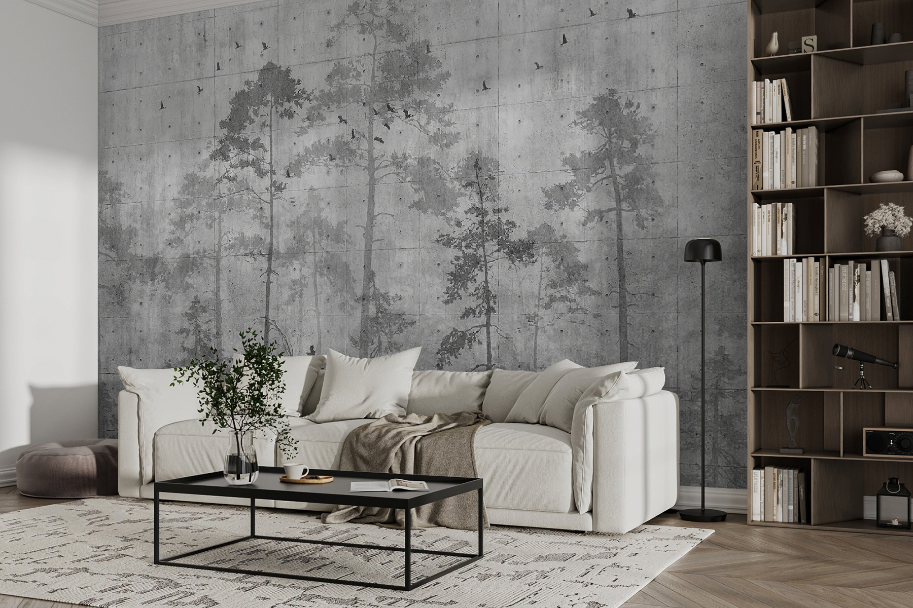 Altijd al een vleugje natuur willen hebben zonder het onderhoud? Deze muurschildering “Boomschaduw op een betonnen muur” brengt de rust van een bos rechtstreeks naar je interieur. Zie het als een serene boswandeling zonder insectenspray. De zachte, schaduwrijke bomen tegen de betonnen achtergrond hebben een bijna aquarelachtige uitstraling, als een dromerige, mistige ochtend die speciaal voor jou is vastgelegd.
