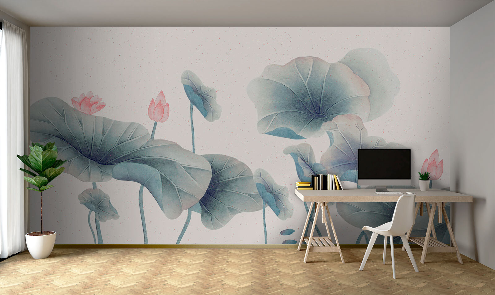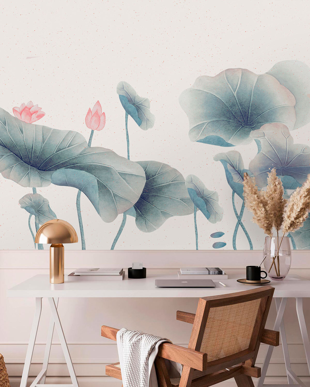 Verander elke kamer in een rustig toevluchtsoord met de muurschildering ‘Delicate Blooms in Serene Waters’. Stel je voor dat je ‘s ochtends van je koffie nipt, terwijl je geniet van de zachte tinten van aquarelbladeren en zachtroze bloesems die eruitzien alsof ze net uit een rustige vijver zijn komen drijven. Het draait allemaal om die rustige sfeer – perfect voor een gezellig leeshoekje of een dromerige slaapkamer. Krijgt u bezoek van vrienden? Ze zullen naar die muur staren en zich afvragen of ze in een chique kunstgalerie zijn beland. Echt, het is alsof de natuur uw ruimte een warme knuffel geeft. Mis deze kans niet om een beetje rust in uw huis te brengen!