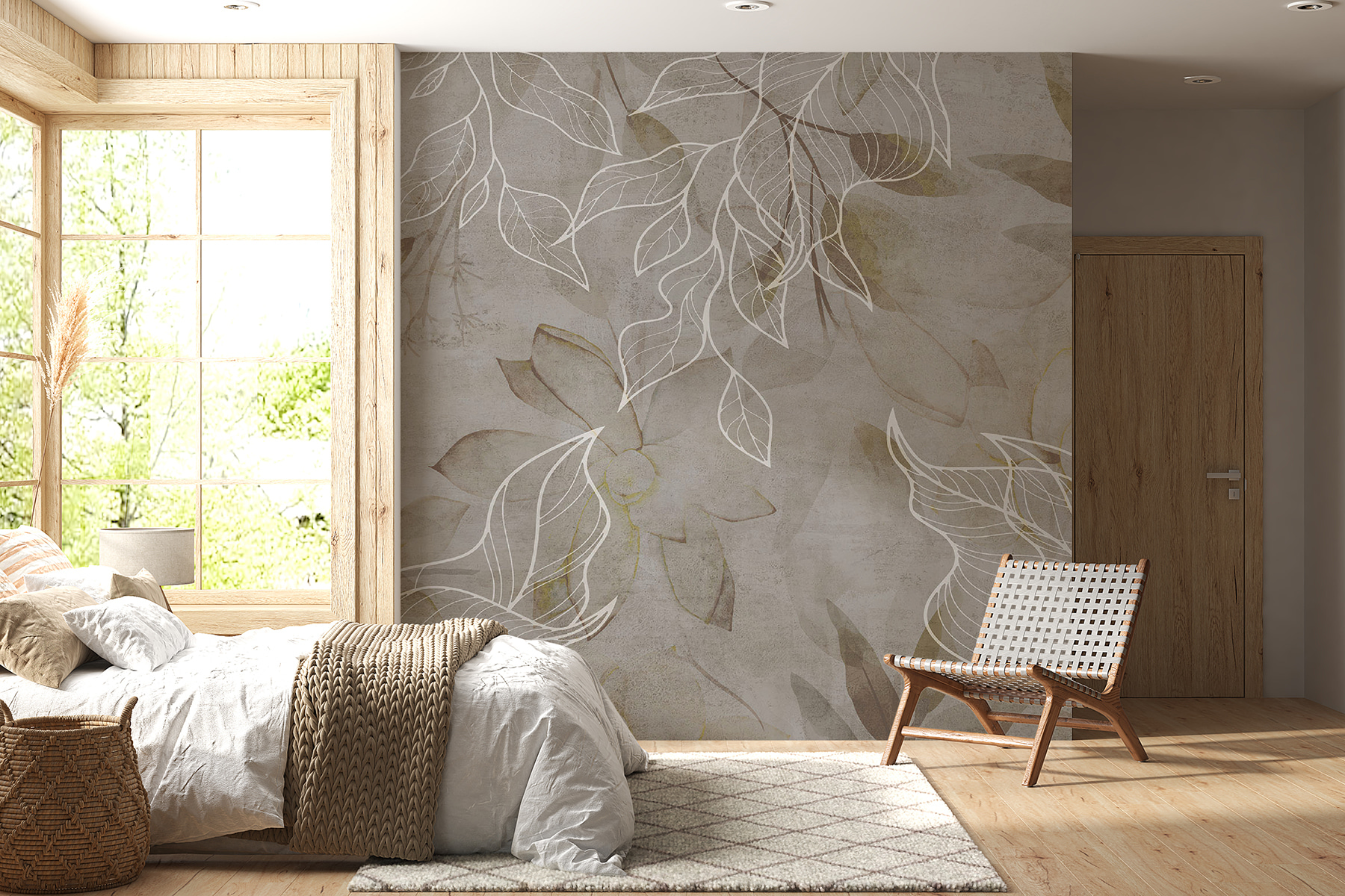 Hallo daar! Ooit gedacht aan het transformeren van je ruimte met iets anders? Deze “Elegant bloemendesign met delicate lijnen” muurschildering zou wel eens de vonk kunnen zijn die je nodig hebt. Stel je voor dat je wakker wordt met deze schoonheid – het is alsof je elke dag in een zachte aquareltuin stapt. Die zachte grijstinten, zachte bloemen en delicate bladeren creëren zo’n rustgevende sfeer. Perfect voor een gezellige slaapkamer of een serene woonkamer. Voelt een beetje als een mini tropisch toevluchtsoord, vind je niet? Het heeft een bijna fluisterachtige kwaliteit waardoor alles sereen en verfijnd aanvoelt. Je kunt niet anders dan glimlachen als je het ziet. Geef je muren wat liefde!
