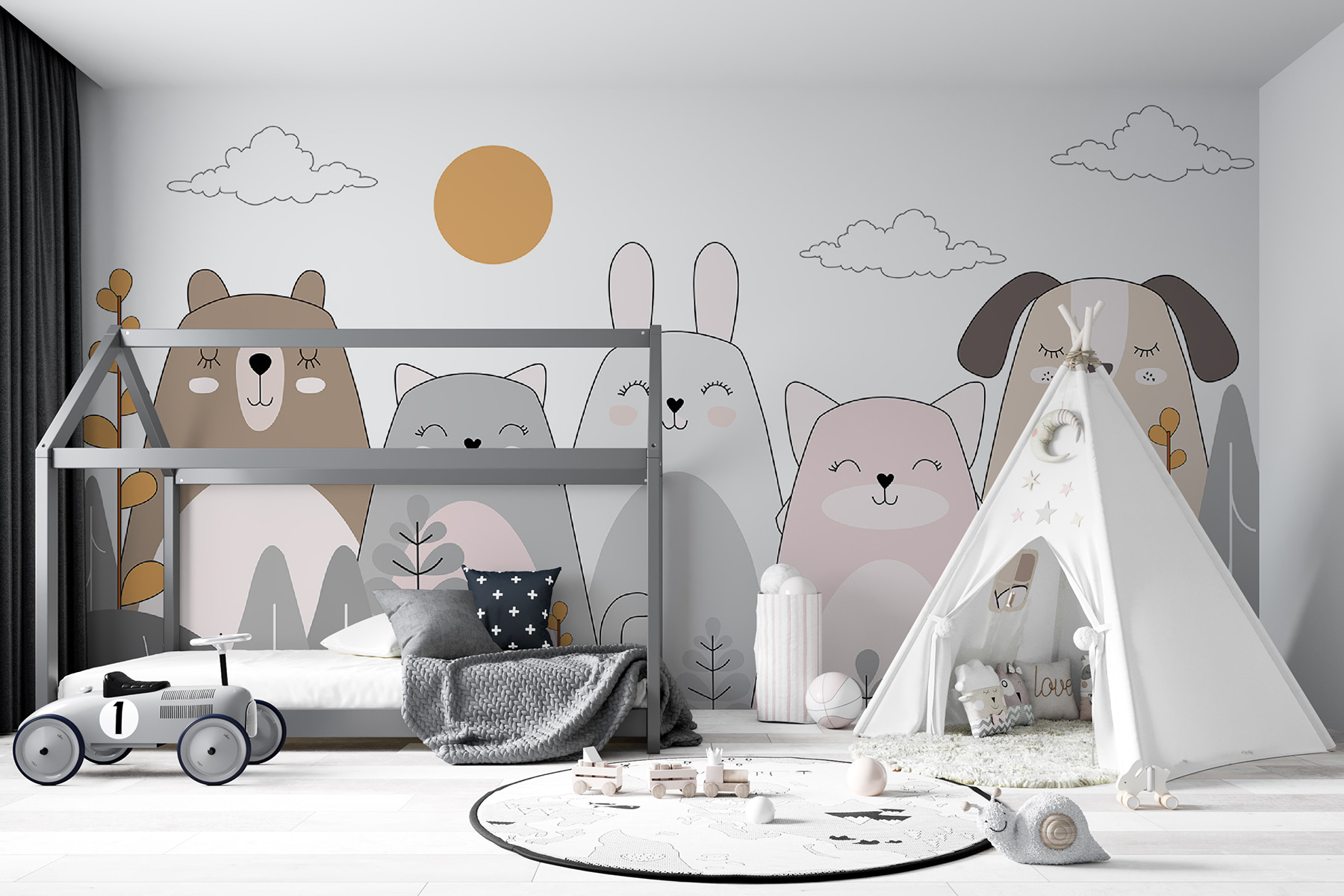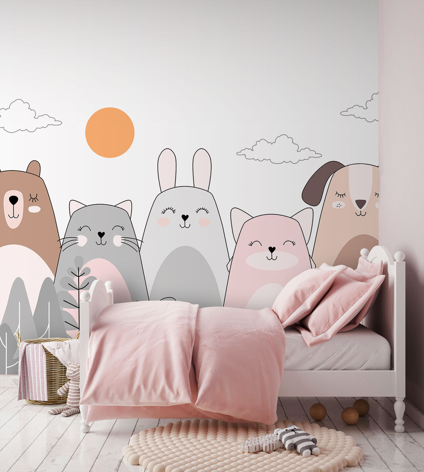 Fleur een kinderkamer op met deze prachtige muurschildering “Happy Animals Enjoying the Sun”. Stel je een zonovergoten bos voor waar schattige dieren gewoon chillen en van het leven genieten – het is als een kijkje in een grillige wereld waar alles warm en donzig is. De zachte aquareltinten van deze muurschildering zijn perfect voor zonen, dochters of zelfs een vleugje vreugde in elke ruimte en zorgen voor een speelse en toch serene sfeer. Kinderen zullen het geweldig vinden om elke ochtend wakker te worden met deze vriendelijke gezichten, die de dag vrolijk inluiden. Echt, wie kan die schattige glimlachjes weerstaan? Deze print is meer dan een decorstuk; het is een zonnige knuffel aan je muur. Perfect om je verbeelding te prikkelen en elke ruimte extra speciaal te maken.