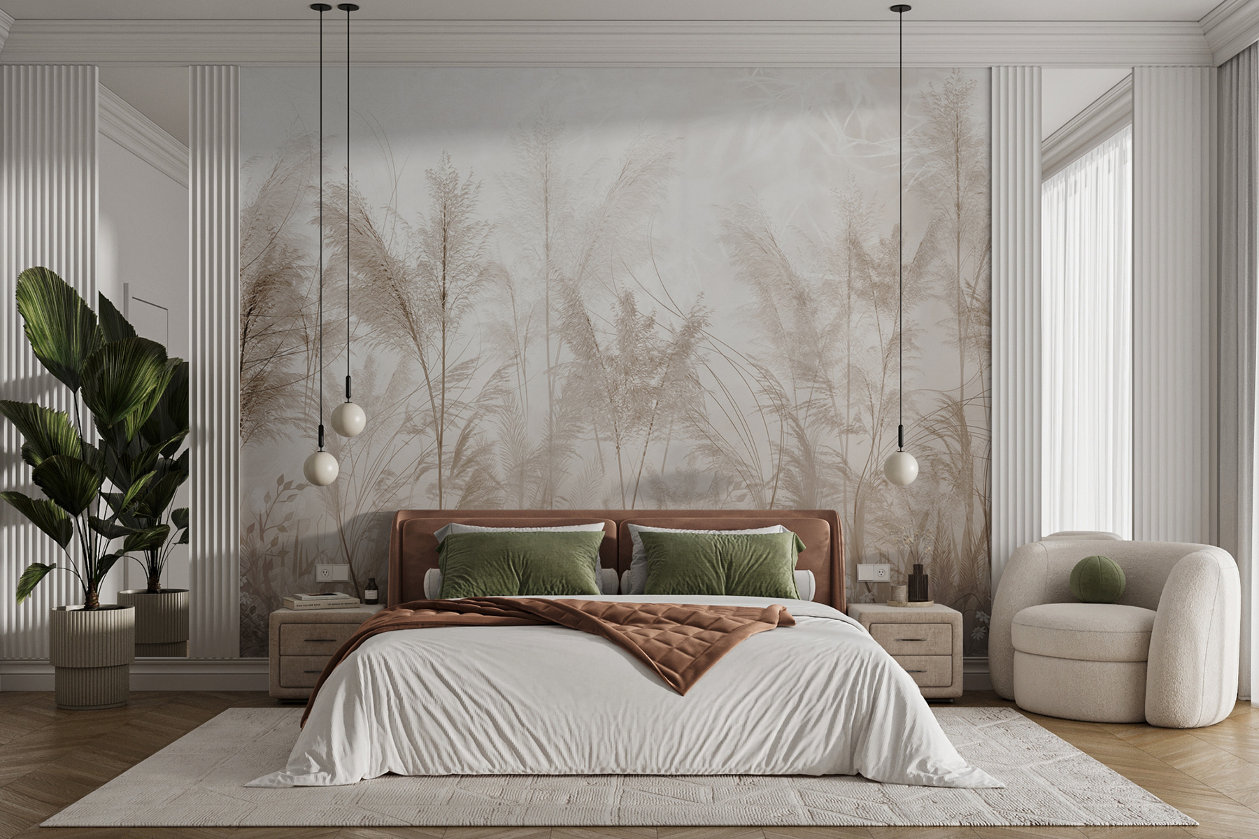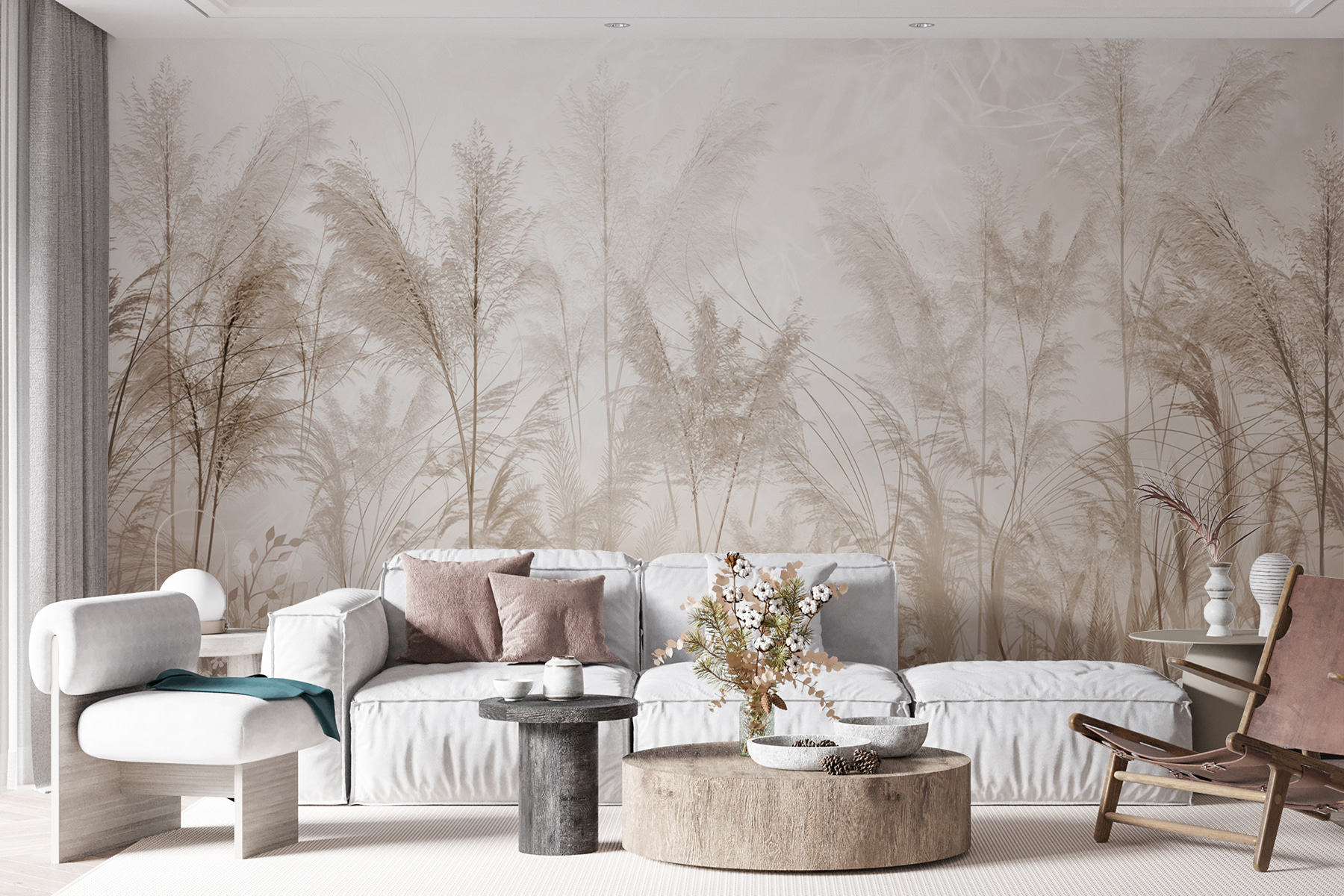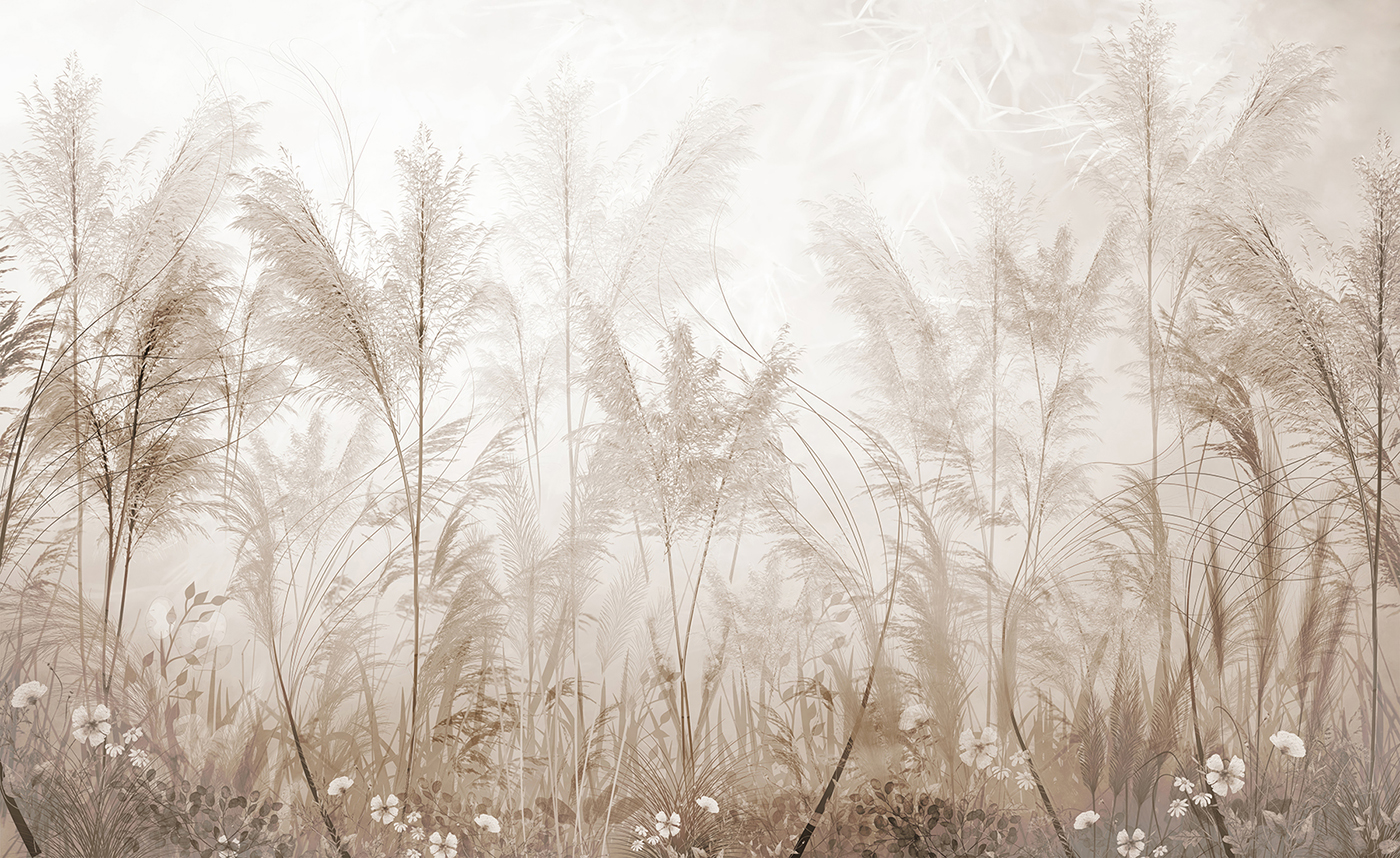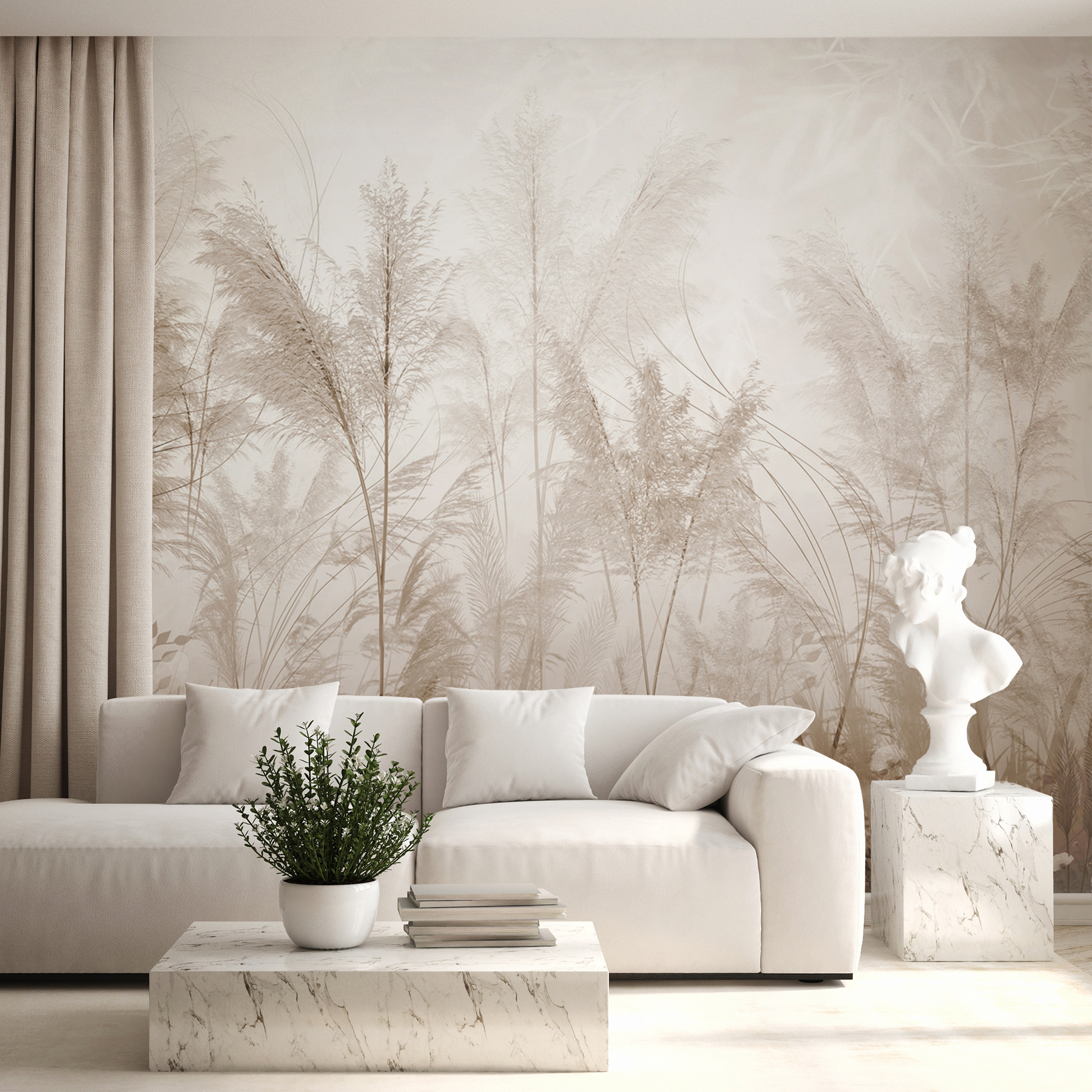 Verander elke kamer in een serene ontsnapping met deze prachtige muurschildering van hoge grassen die zachtjes wiegen in het ochtendlicht. Stel je voor dat je wakker wordt met dit rustgevende tafereel, waar zachte tinten fluisteren van de dageraad en de rust van de natuur. Het is alsof je het buitenleven naar binnen haalt, zonder de insecten en het gure weer. De delicate penseelstreken en dromerige sfeer creëren een vredige sfeer die perfect is voor rustige momenten of levendige bijeenkomsten. Of het nu een gezellig leeshoekje is of een levendige eetruimte, deze muurschildering nodigt uit tot warmte en een vleugje van de natuur. Perfect voor wie houdt van een beetje natuur in zijn interieur!