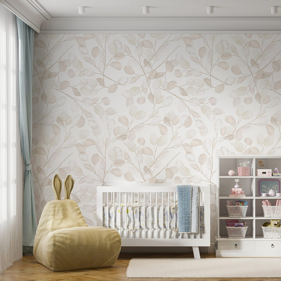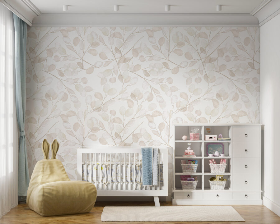 Transformeer elke ruimte met deze charmante muurschildering met zachte, subtiele plantmotieven. Het is alsof je een vleugje natuur naar binnen brengt – perfect voor een kinderkamer of een kleine meisjeskamer. Stel je voor: je kind dat omhoog staart naar die tere blaadjes en droomt van avonturen in betoverende bossen of vlinderdansen. De zachte kleuren creëren een serene sfeer, waardoor het een gezellig toevluchtsoord wordt na een dag vol gelach en spel. Het is niet alleen decor; het is een canvas voor verbeelding! Deze muurschildering nodigt uit tot verhalen, gegiechel en zoete dromen, waardoor elk moment in de kamer een beetje specialer wordt. Stel je de glimlach eens voor!