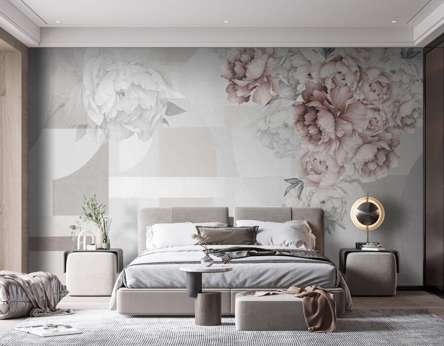Met zijn mix van delicate bloemen en geometrische patronen is hij veelzijdig genoeg voor moderne, minimalistische of zelfs shabby-chique stijlen. Of je nu je woonkamer, slaapkamer of dat gezellige leeshoekje aan het opknappen bent, deze muurschildering geeft de ruimte een frisse en elegante uitstraling. Bovendien is het gewoon leuk om naar te staren – misschien ga je wel wat vaker dagdromen. En wie kan er niet wat meer dagdromen in zijn leven gebruiken?