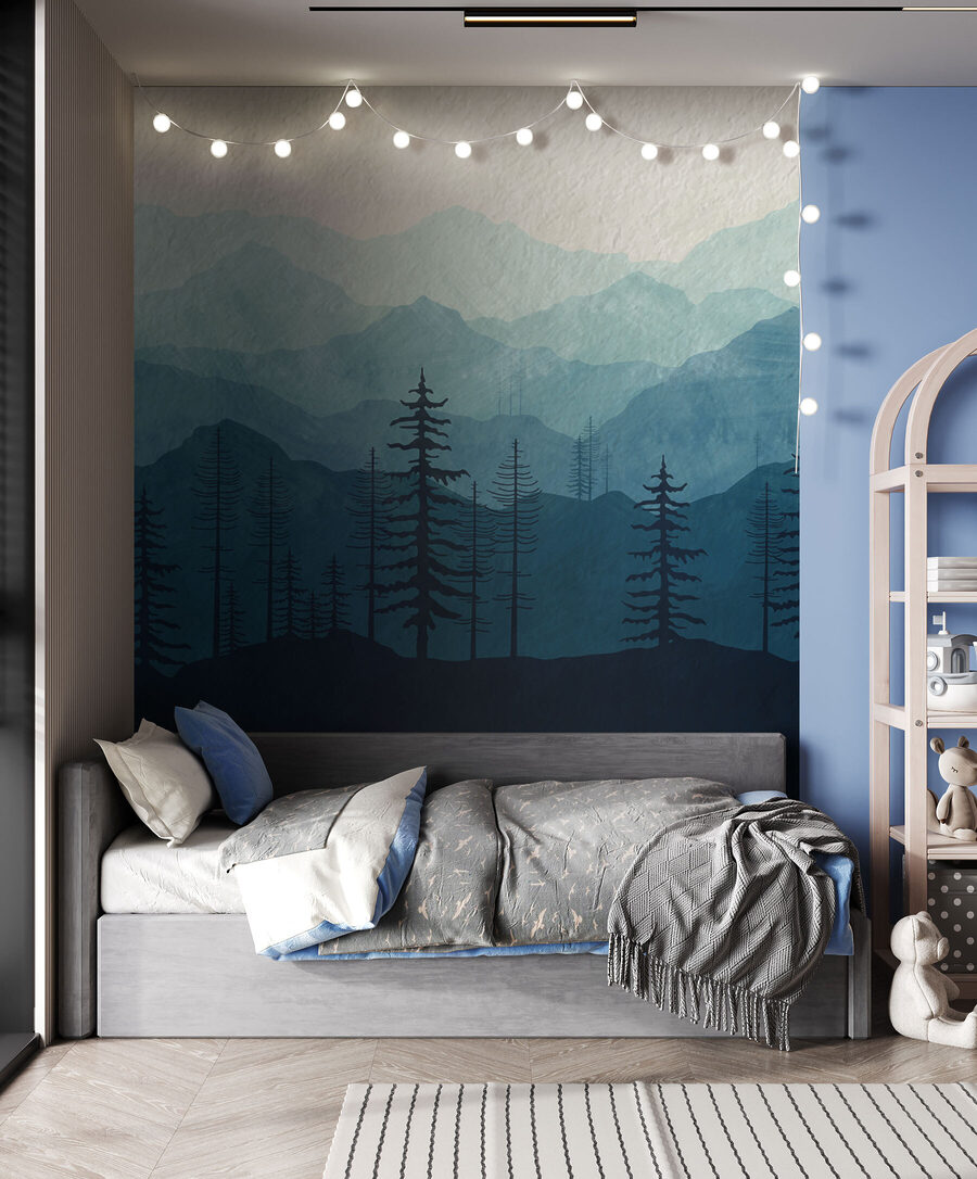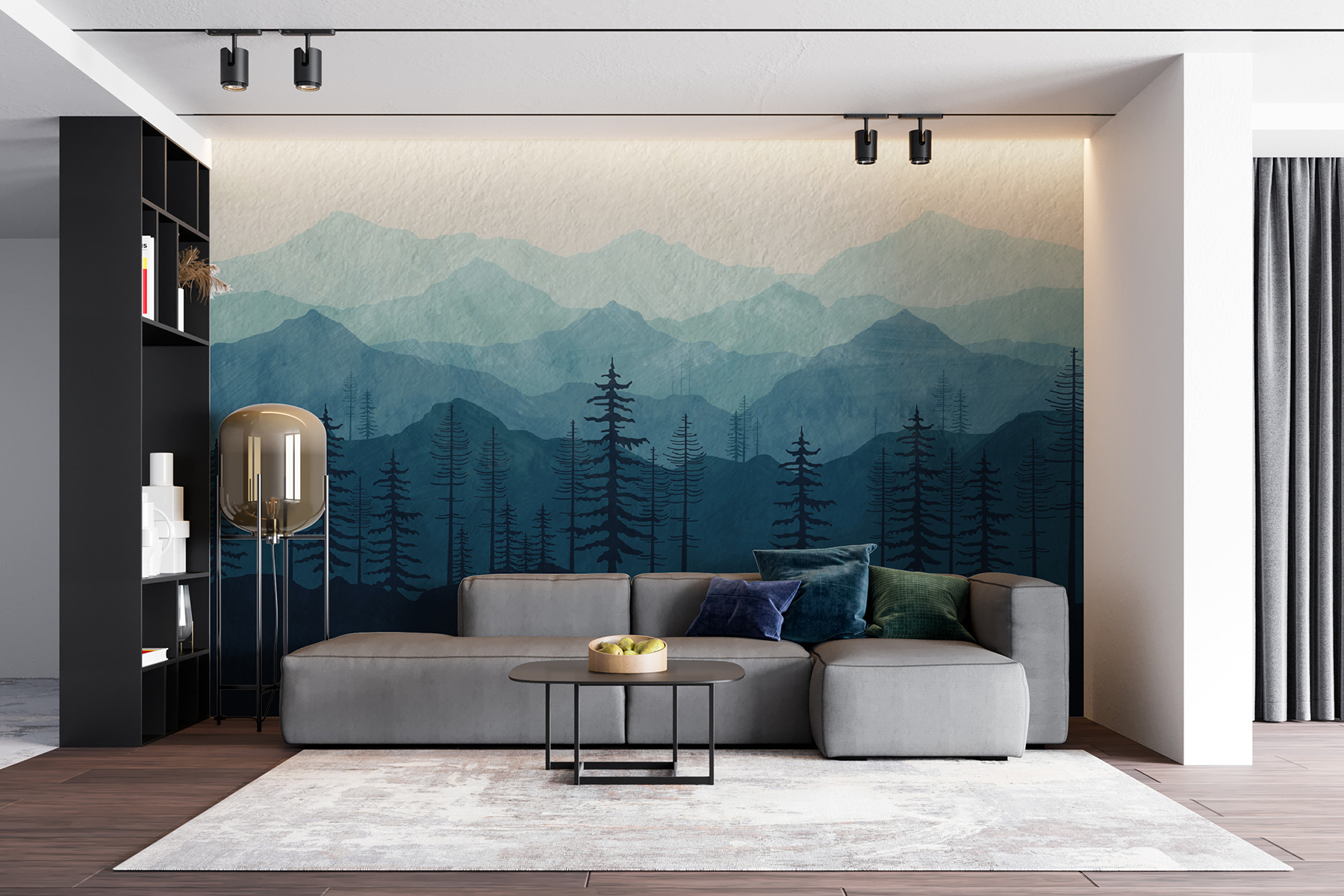 Ooit gedroomd om wakker te worden in een gezellige hut genesteld in het hart van een diep, vredig bos? Deze “Fotobehang Silhouette of a Tree” is je ticket naar rust zonder je huis te verlaten. Stel je de aquarellagen voor van majestueuze bergen en hoge, serene bomen die zich over je muur uitstrekken en je bijna de rust en de geheimen van de natuur influisteren.