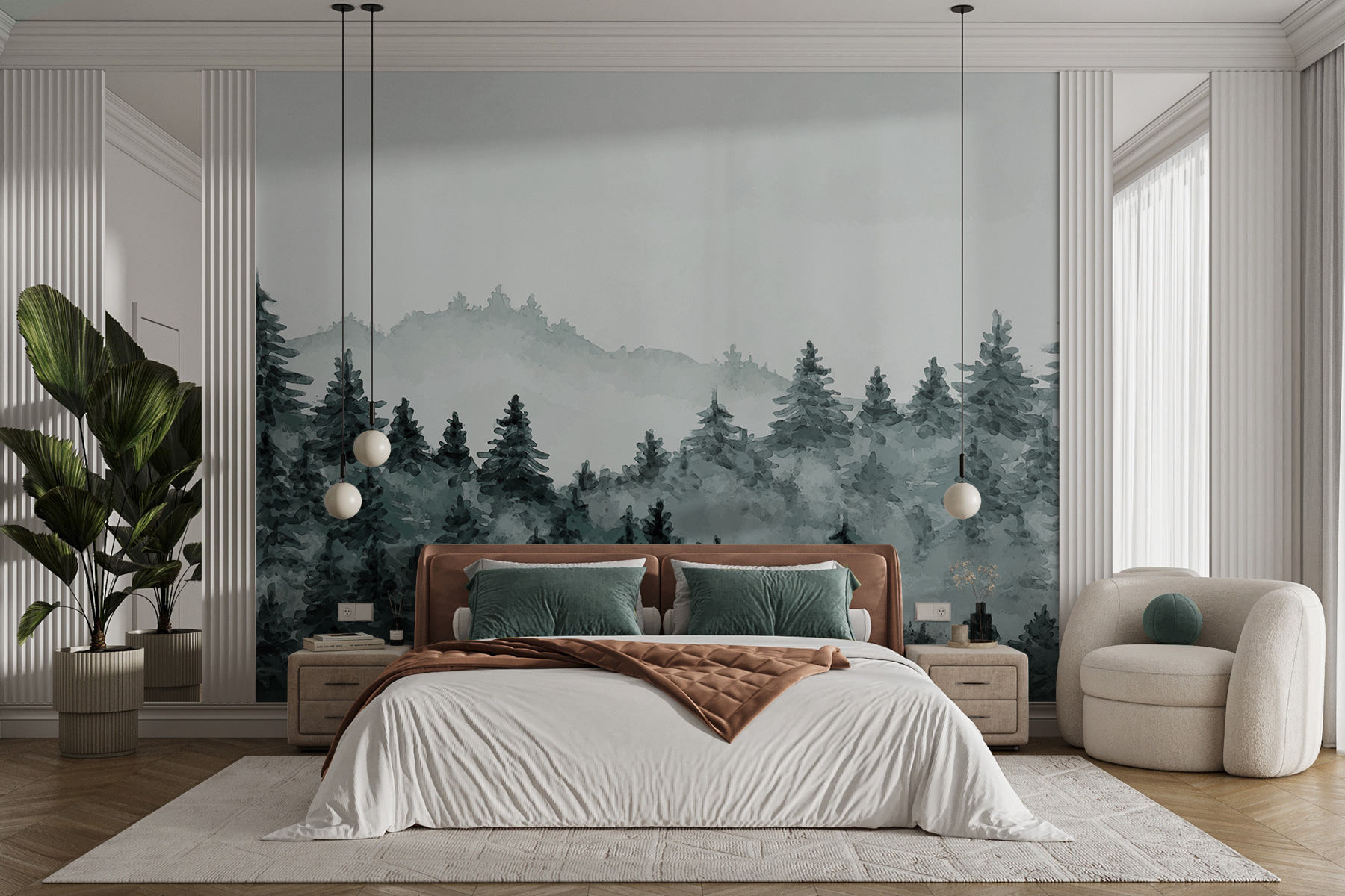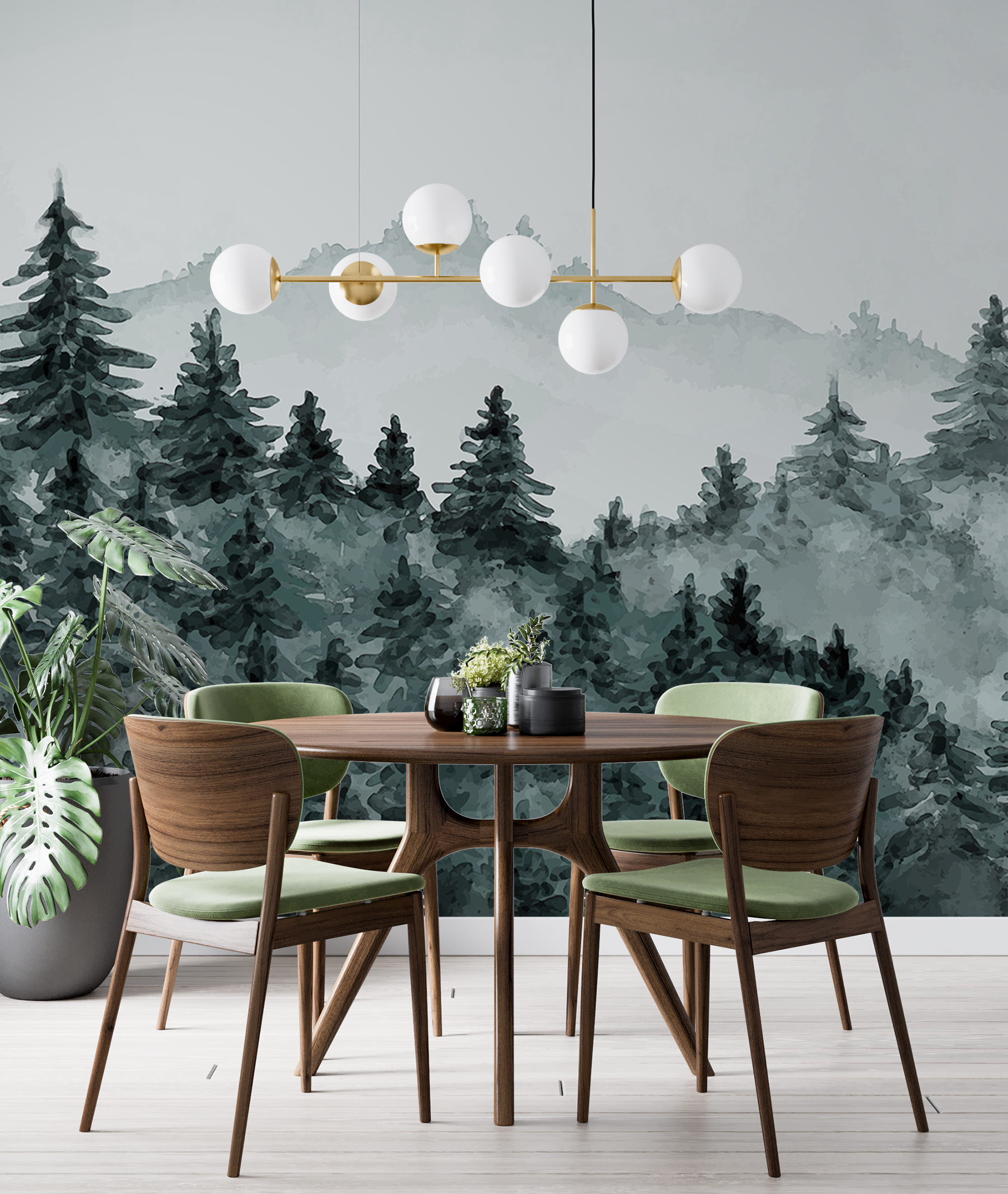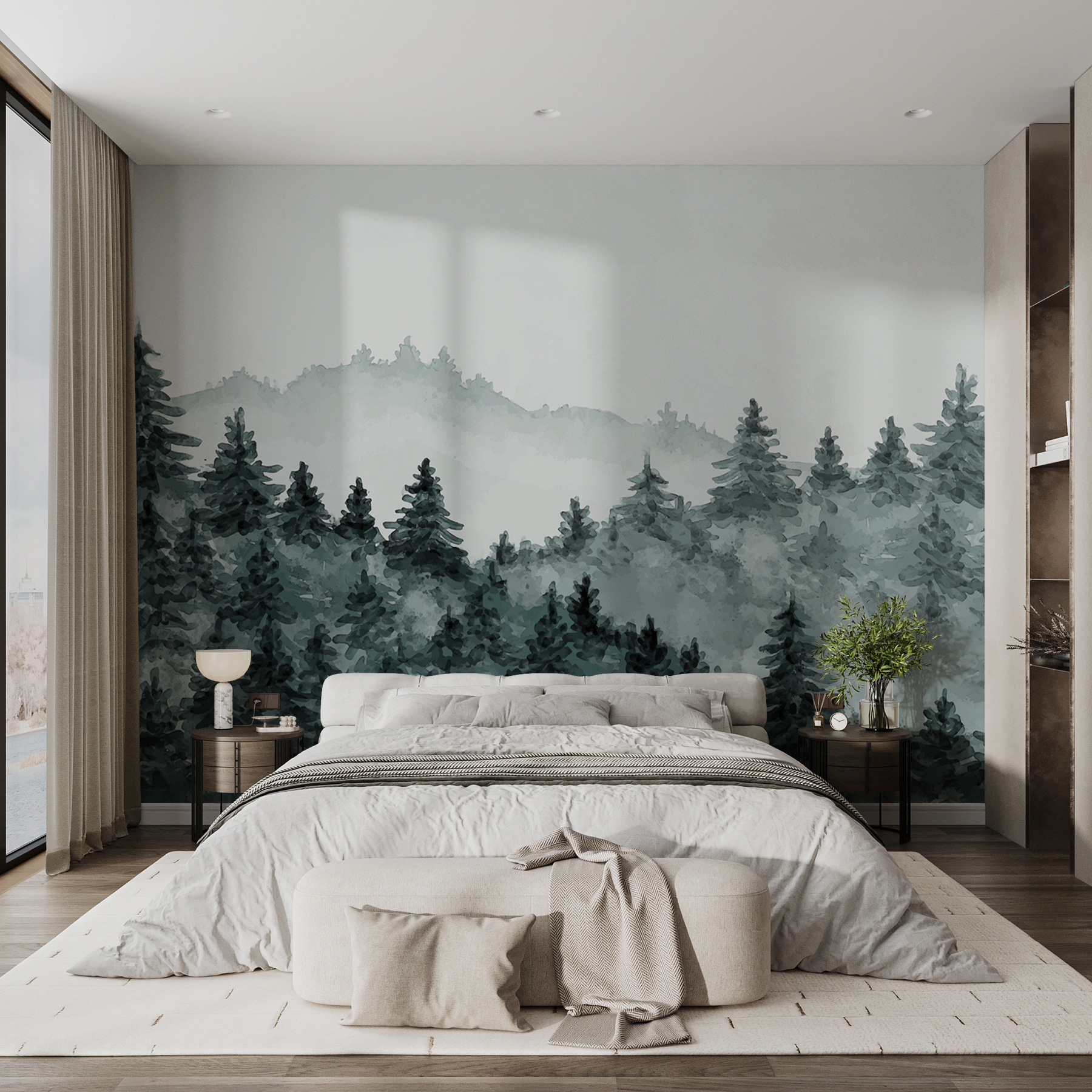 Stel je voor dat je je woonkamer binnenloopt en BAM!- je staat ineens in een rustig, mistig bos. Met deze muurschildering “Misty Forest with Evergreen Trees” breng je een sereen bos direct op je muren. Perfect voor die momenten waarop je even wilt ontsnappen aan de drukte zonder je gezellige ruimte te verlaten. Het heeft een dromerige, aquarelachtige sfeer die super rustgevend is. Stel je je ochtendkoffie voor met dit mistige tafereel – het is net een mini-retraite! De sfeer van deze muurschildering is ideaal voor elke ruimte die een vleugje magie van de natuur nodig heeft.