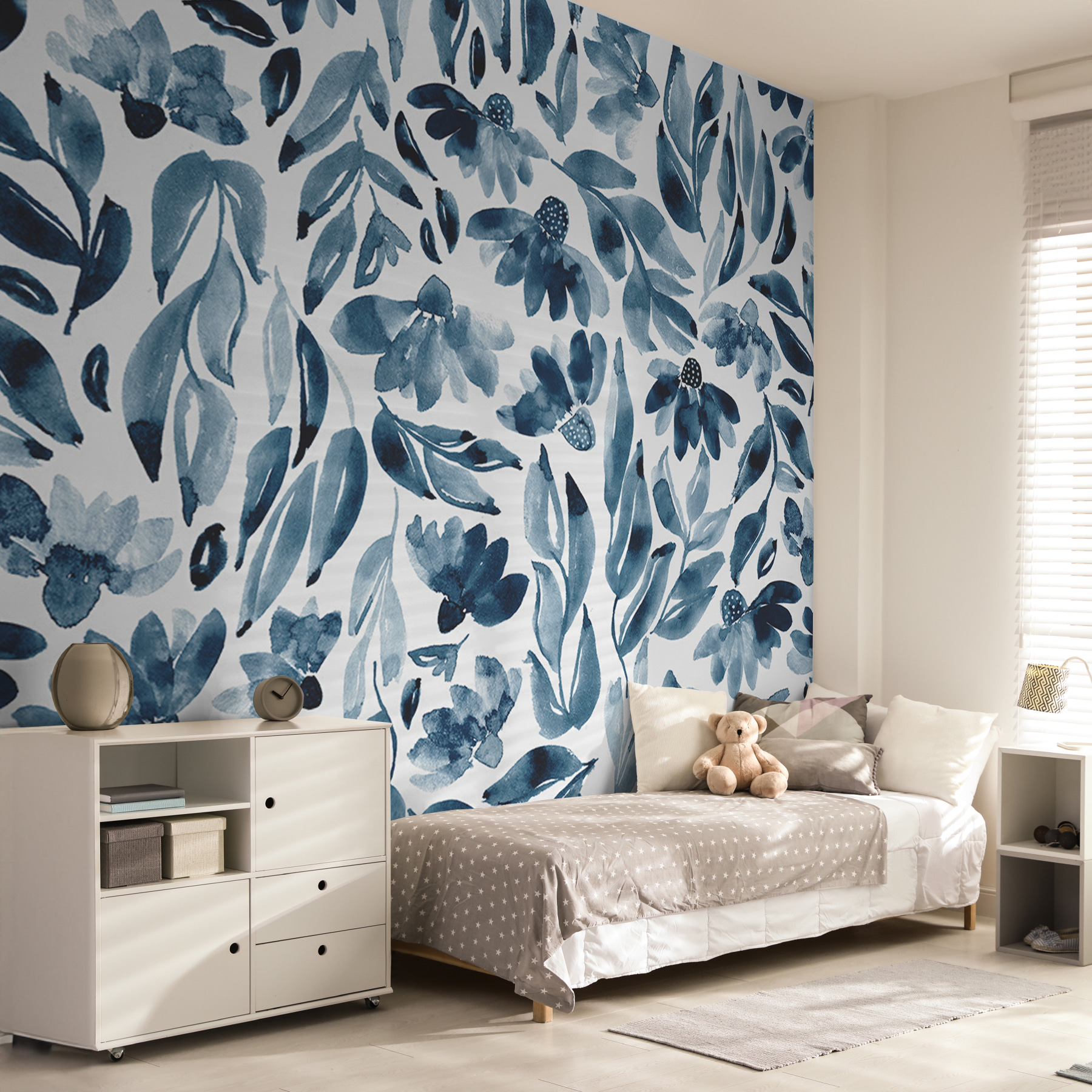 Stel je eens voor: een dag in je favoriete leunstoel doorbrengen, boek in de ene hand, dampende kop thee in de andere, met deze prachtige muurschildering “Bloemen- en bladerpatroon” die zich over de kamer uitstrekt. Het rustgevende aquarelontwerp met levendige bloesems en weelderige bladeren brengt een vleugje frisse, natuurlijke schoonheid binnenshuis. Stel je de gesprekken en complimenten eens voor als vrienden het zien en hoe het de ruimte direct opvrolijkt. Deze muurschildering is niet alleen decor; het is een stemming, een vibe, een mini-uitstapje bij je thuis! Perfect voor natuurliefhebbers of iedereen die op zoek is naar een vleugje kunstzinnige elegantie.