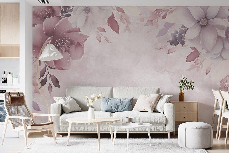 Bekijk deze prachtige muurschildering – “Pastel bloemen elegantie op display”. Perfect als je houdt van een vleugje eigenzinnigheid in je inrichting. Stel je voor dat je een kamer binnenloopt vol dromerige waterverf pioenrozen en zachte bloemen in zacht roze en paars. Alsof je een sprookje binnenstapt, toch?
