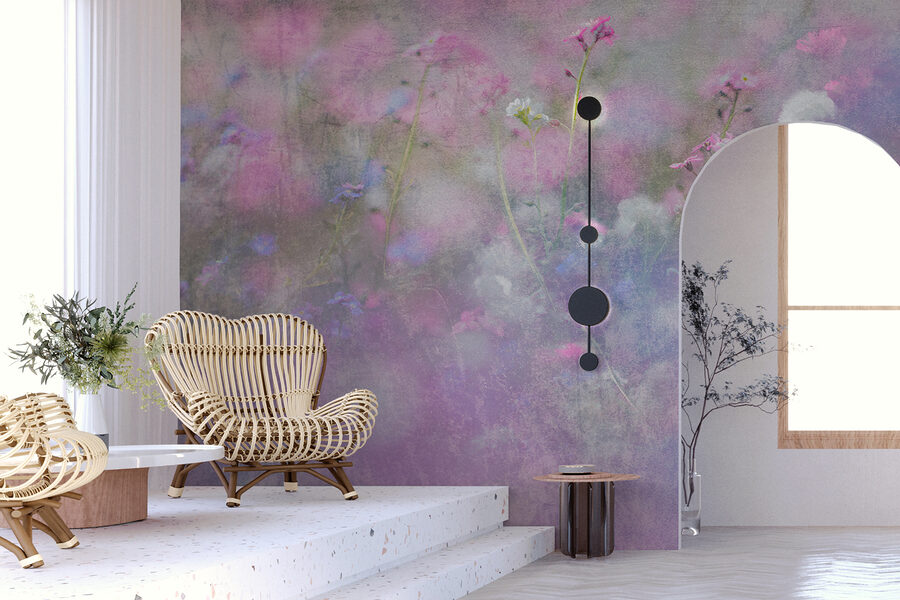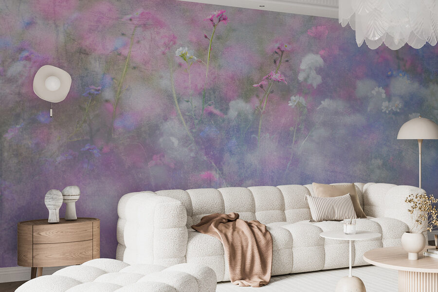 Stel je voor dat je een serene tuin binnenstapt, waar bloemen dansen in een dromerige waas. Deze muurschildering geeft dat grillige gevoel perfect weer. Zachte pasteltinten wervelen door elkaar en creëren een etherische achtergrond die elke ruimte omtovert in een oase van rust. Het is alsof je een frisse wind op je muur hebt. Stel je voor: je nestelen met een goed boek, thee drinken en de kleuren over je heen laten komen – puur geluk. Of het nu in een gezellige woonkamer is of in een lichte hal, dit stuk voegt een zacht vleugje van de charme van de natuur toe. Het is kunst die fluistert in plaats van schreeuwt en uitnodigt tot rustige momenten van reflectie.