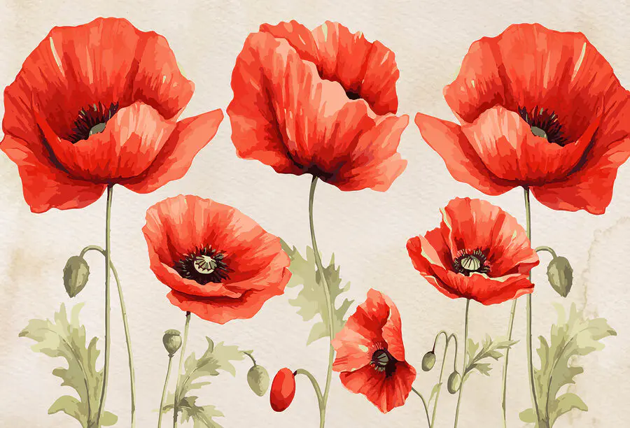 Fotobehang Rode klaprozen in aquarelstijl. (SKU: w00719)