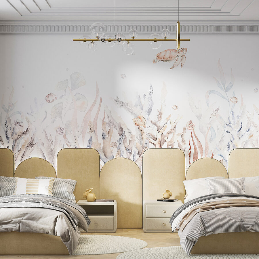 Stel je de rust van het zeeleven voor in je woonkamer! Dit “Muurschilderingen Zee leven zwemmend tussen koralen” stuk, is alsof je een onderwater paradijs aan je muur hebt. Wervelende koralen, speelse vissen en sierlijke zeeschildpadden brengen een frisse, serene sfeer – perfect voor elke kamer die hunkert naar een vleugje kalme elegantie. Ik bedoel, stel je je kantoor of kinderkamer eens voor met deze serene touch – het is net een dagelijkse mini-vakantie zonder het huis te verlaten. Een schattig schildpadje drijft voorbij, glijdt gracieus en tovert een glimlach op je gezicht telkens als je het ziet. De aquarelstijl geeft het een zacht, artistiek gevoel – bijna als een dromerig schilderij. Als je van vissen of rust aan zee houdt, dan is deze muurschildering iets voor jou. Duik erin en voeg een vleugje oceaanschoonheid toe aan je ruimte!