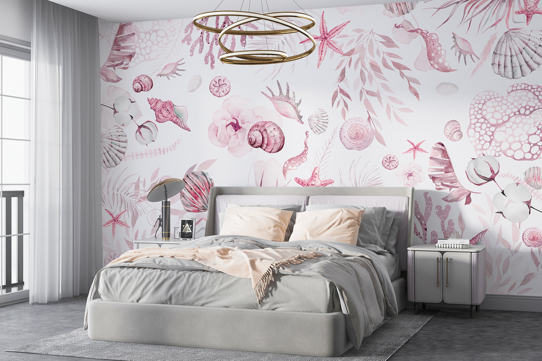 Stel je voor dat je je ruimte omtovert in een dromerig strandverblijf-met een eigenzinnige twist. Deze muurschildering “Seashells and Leaves in Pink Harmony” combineert zachte, aquarelachtige schelpen en delicate bladeren, allemaal in zachtroze. Het is alsof de lente en de oceaan elkaar ontmoeten op je muur! Perfect voor wie houdt van een beetje op de natuur geïnspireerde decoratie zonder te schreeuwerig te zijn. Stel je voor dat je ‘s ochtends aan je koffie nipt en naar die mooie schelpen kijkt. Het voelt elke dag als een minivakantie! Ideaal voor slaapkamers, woonkamers of zelfs dat artistieke hoekje dat je aan het plannen bent.