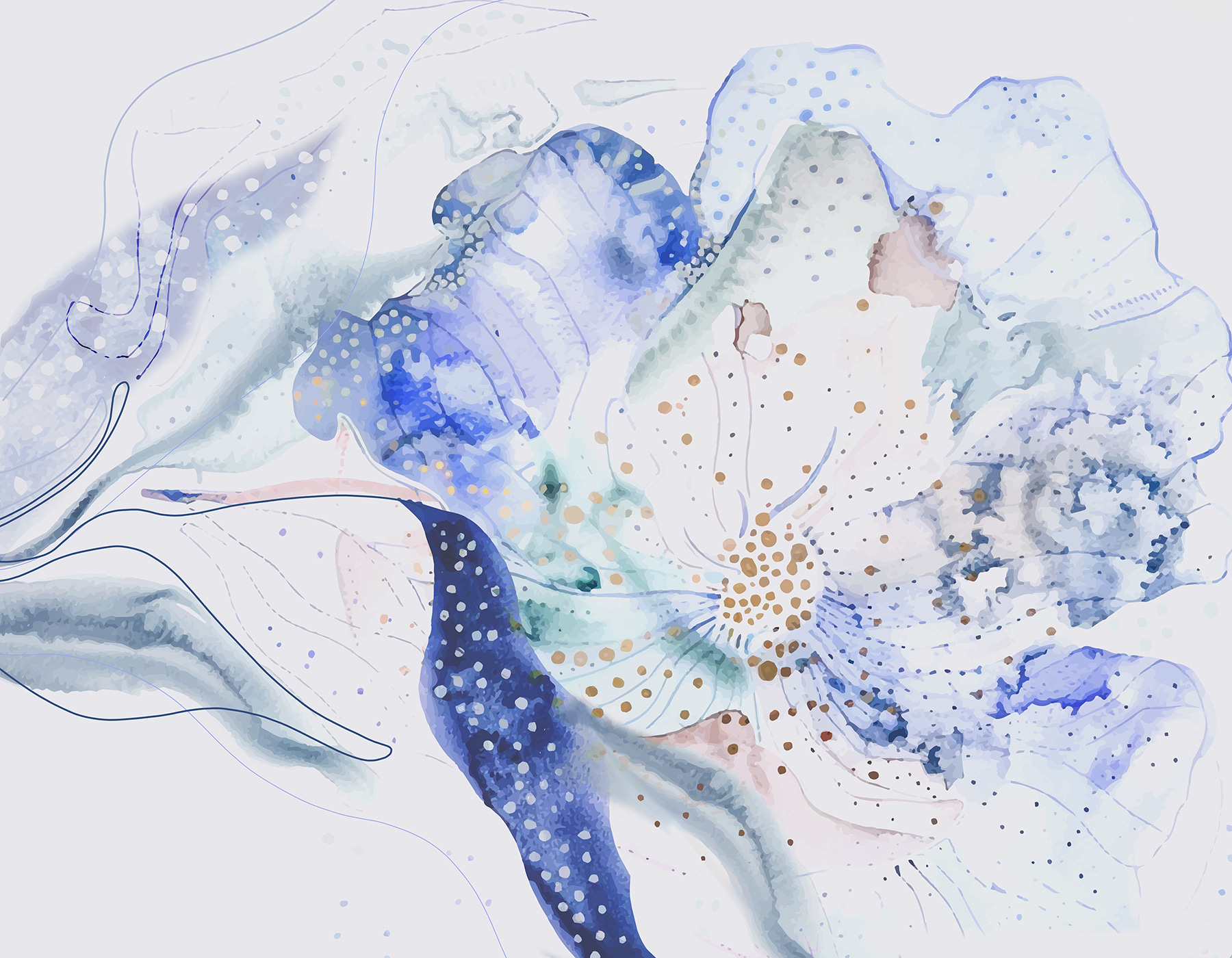 Fotobehang Fotobehang Delicate aquarelbloesem in blauw. (SKU: w00897)