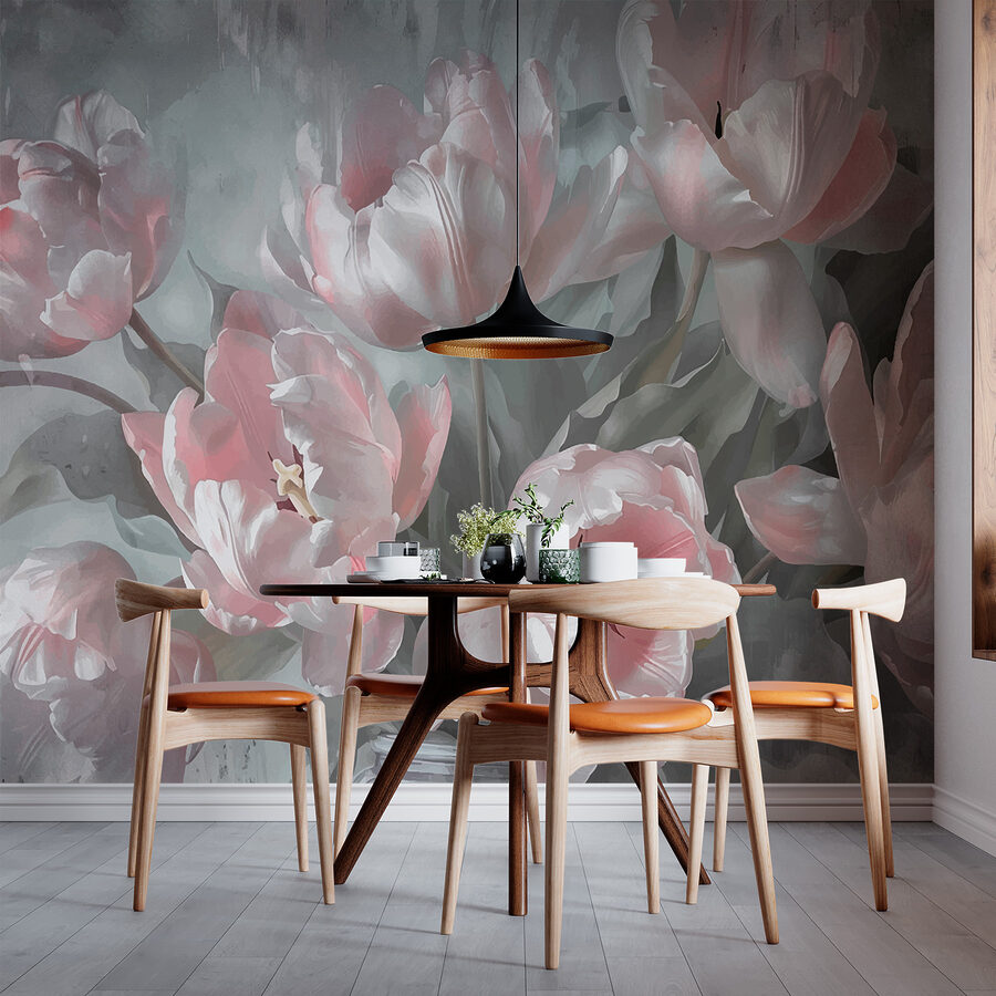 Tover elke kamer om in een sereen toevluchtsoord met deze prachtige muurschildering, “Soft Pastels in Bloom”. Stel je voor dat je een tuin binnenstapt met dromerige pasteltulpen, waarbij elk bloemblaadje een zacht vleugje elegantie uitstraalt. De zachte tinten brengen een kalme sfeer, perfect voor gezellige ochtenden met een kopje koffie of middagen vol dagdromen. Vrienden zullen langskomen en in plaats van het gebruikelijke gesprekje zullen ze misschien zeggen: “Wow, waar heb je dit vandaan?”. Het is als een frisse wind, een lust voor het oog en o zo vrolijk, wachtend om je kamer in bloemenweelde te hullen.