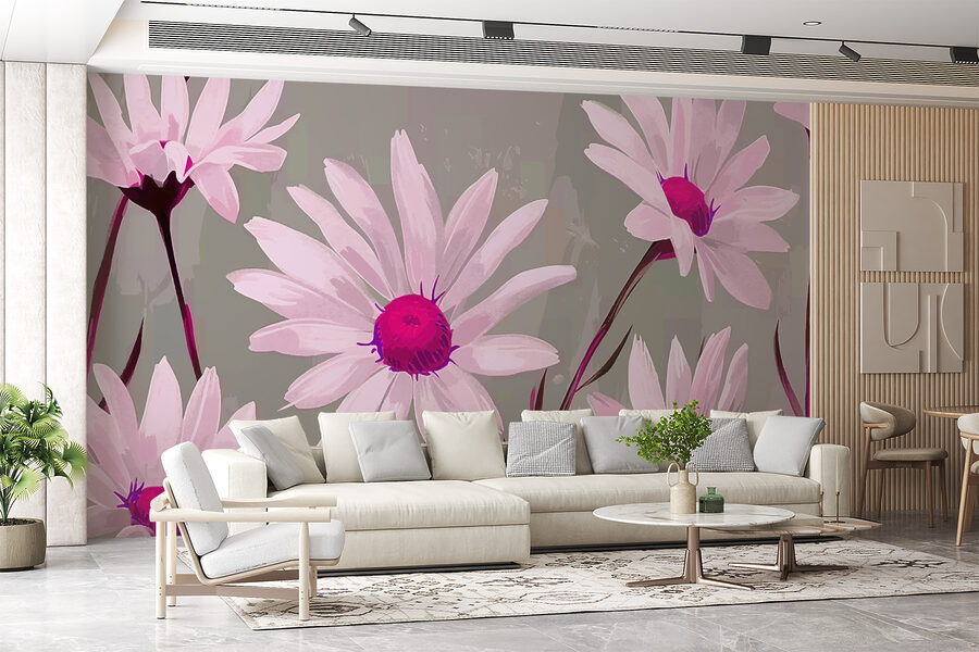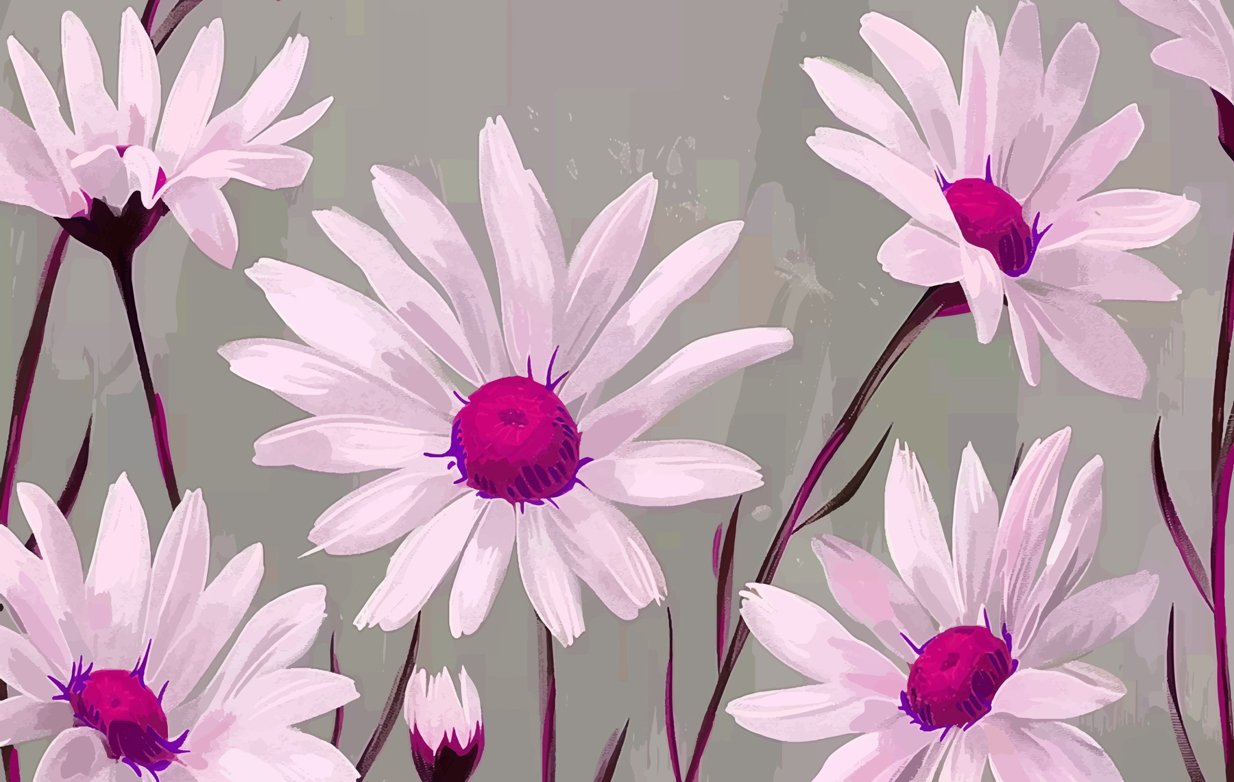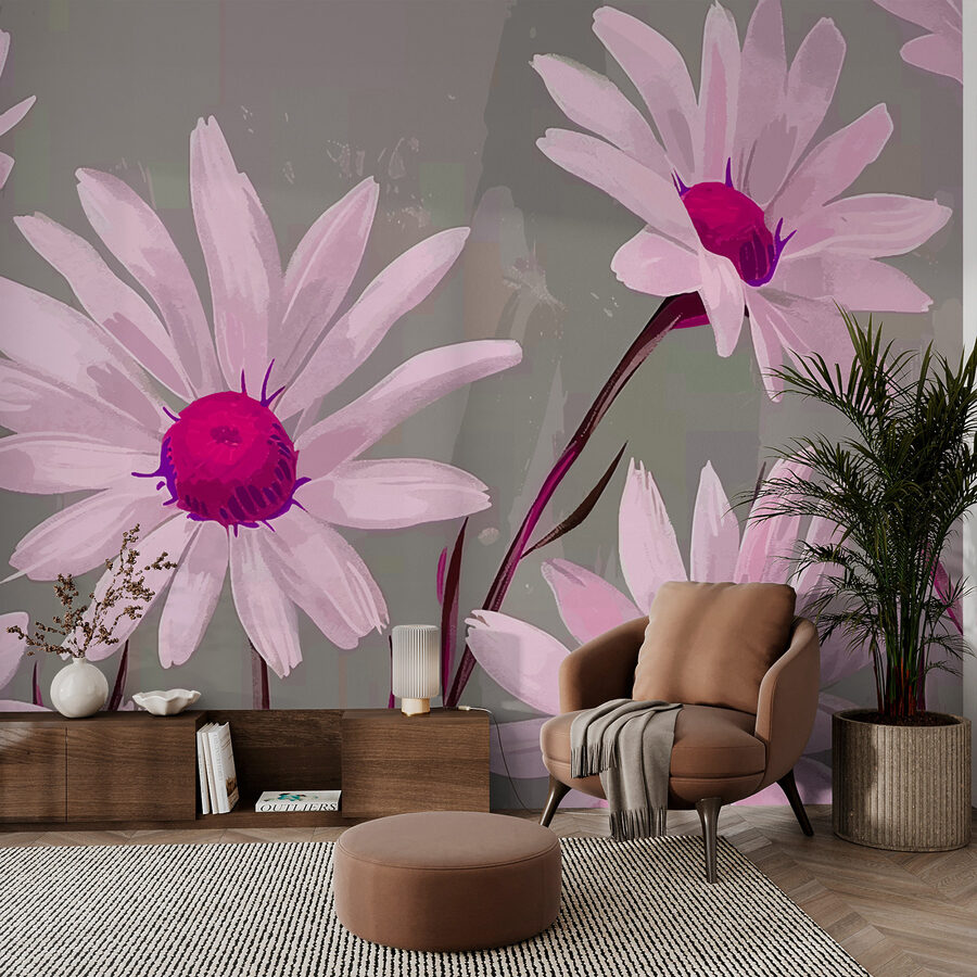 Transformeer elke kamer met deze dromerige muurschildering met een verrukkelijke groep witte bloemen, elk met een grillig paars hart. Het is als een frisse wind die de natuur in huis haalt. Stel je voor dat je een ruimte binnenloopt waar levendige bloemen op de muren dansen en de stemming er meteen beter op wordt. Perfect voor een knus hoekje, een vrolijke woonkamer of zelfs die ene muur die gewoon wat pit kan gebruiken. Het is moeilijk om niet te glimlachen om deze charmante bloemblaadjes. Geef je muren de liefde die ze verdienen – wie wist dat bloemdecoratie zo leuk kon zijn?