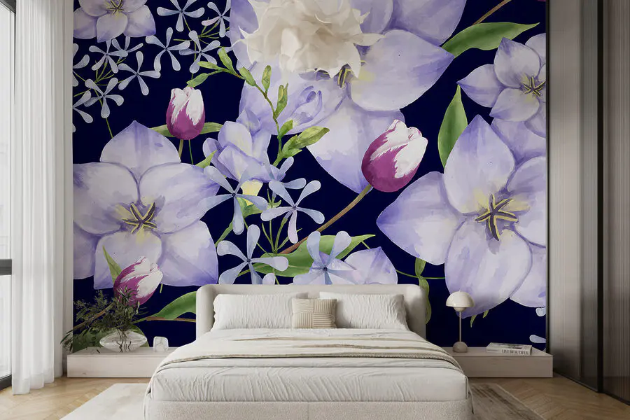 Stel je voor dat je een kamer binnenstapt en meteen wordt meegevoerd naar een dromerig veld vol nachtbloemen onder een weidse sterrenhemel. Deze muurschildering hangt niet alleen aan de muur, maar transformeert de hele ruimte. De aquarelbloemen zijn als fluisteringen van de vredige nachten in de natuur, die verhalen over tere bloemblaadjes en zachte briesjes. Het is alsof je een geheime tuin hebt die zelfs ‘s avonds bloeit, gewoon in je woonkamer. Perfect voor iedereen die houdt van een vleugje van de kalme magie van de natuur – zonder dat je ‘s nachts water hoeft te geven! Voel de rust binnensijpelen, waardoor elk moment een beetje betoverender wordt.