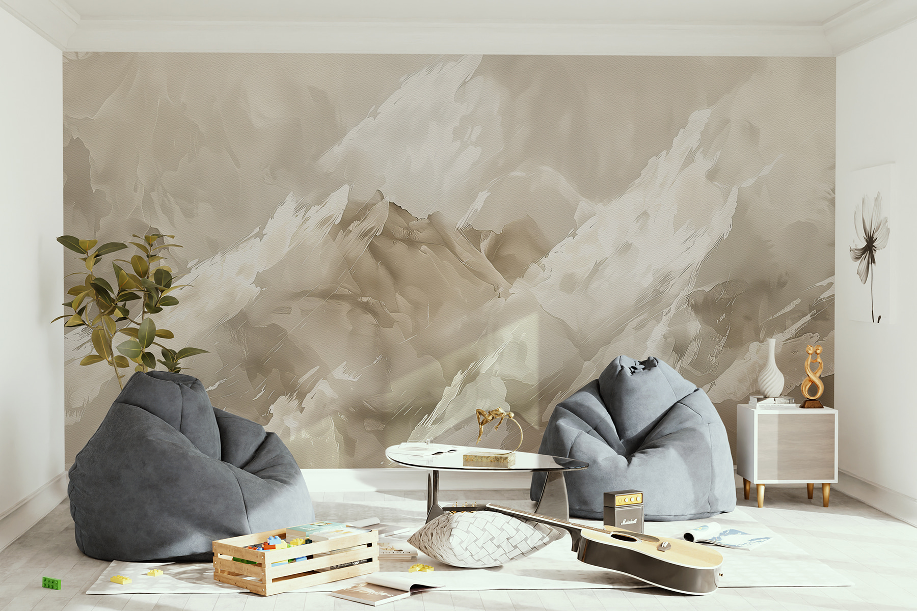 Het is ook een geweldige gespreksstarter – gasten zullen vragen stellen over dat vredige, bijna abstracte tafereel aan je muur. Er is iets met die penseelstreken waardoor je wat langer wilt kijken en telkens nieuwe vormen en patronen ontdekt. Bovendien is het veelzijdig genoeg om in vrijwel elke ruimte te passen – of je nu de woonkamer, een slaapkamer of zelfs een chique thuiskantoor wilt opfleuren. Het is alsof je direct een upgrade voor je muren krijgt zonder ook maar een verfkwast op te tillen!