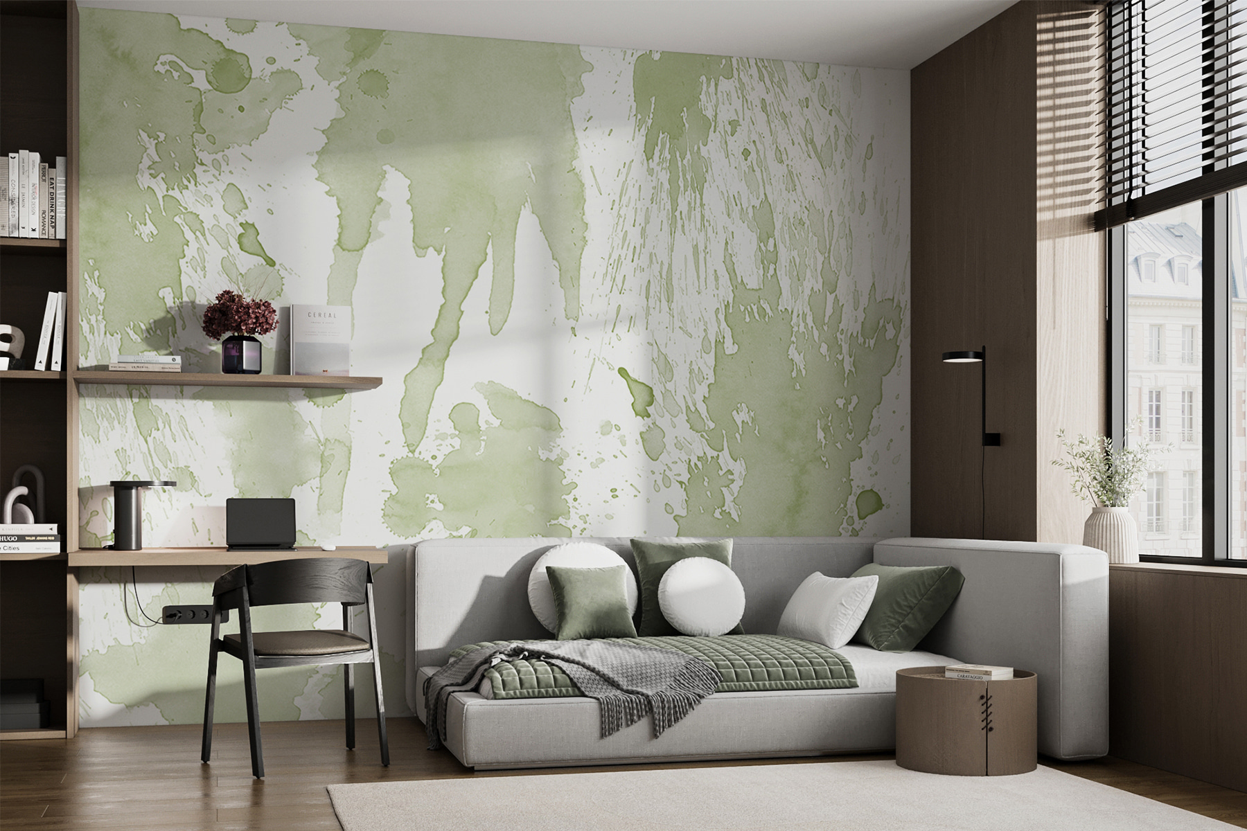 Stel je voor dat je je woonkamer binnenloopt en begroet wordt door de ongedwongen elegantie van “Fotobehang w01285”. Dit aquarel-geïnspireerde stuk trekt je aandacht zonder je zintuigen te overweldigen – het is als een zacht gefluister van creativiteit dat over je muur spat! Die delicate groene tinten en vrije spatten doen me denken aan een luie zondagmiddag schilderen, een beetje chaotisch maar toch prachtig sereen. Deze muurschildering is perfect voor het creëren van een unieke sfeer in elke ruimte en combineert de moeiteloze charme van aquarel met een moderne twist. Het heeft dat relaxte, kunstzinnige gevoel, bijna alsof je favoriete kunstenaar zomaar langskomt en een stukje van zijn ziel op je muur achterlaat. Verweef het met je favoriete inrichting en zie hoe je kamer verandert in een artistieke oase. Het toevoegen van deze muurschildering is alsof je je huis in een warme, uitnodigende omhelzing wikkelt, waardoor elke blik een klein avontuur voor de ogen wordt.