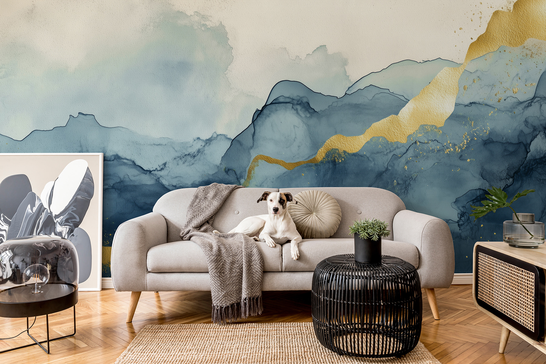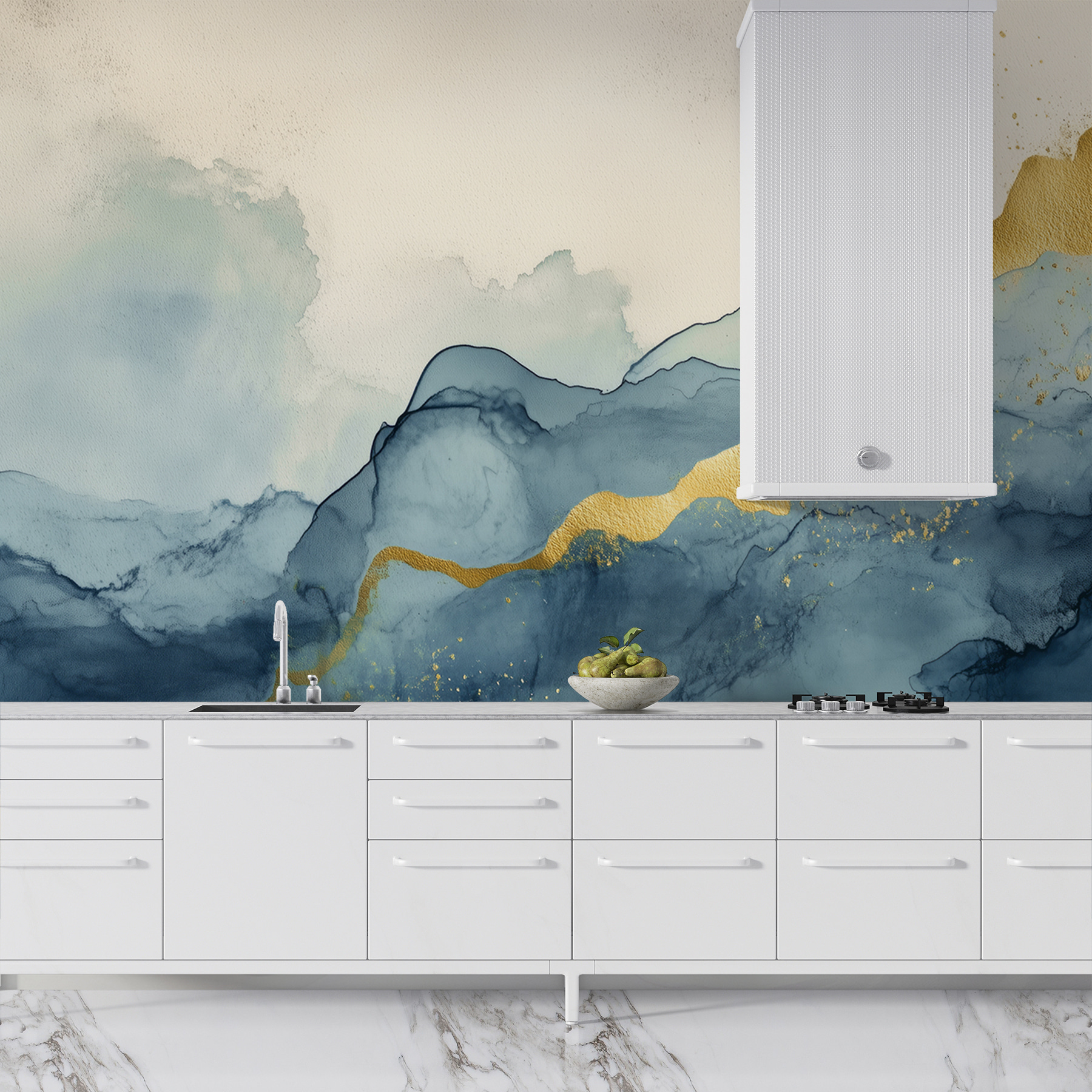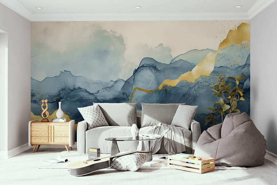 Transformeer je ruimte met een vleugje verwondering! De muurschildering “Misty Mountains with Shimmering Veins” is als een zachte fluistering van de natuur die je uitnodigt om te ontsnappen naar een dromerige wereld. Stel je voor dat je een kamer binnenloopt en begroet wordt door zachte, vloeiende blauwtinten en subtiele aardetinten. Het is bijna alsof je in een knusse deken van sereniteit wordt gewikkeld. Perfect voor die momenten dat een muur wat extra pit nodig heeft.