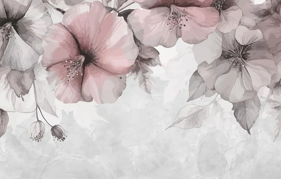 Hebben je muren een frisse wind nodig? Dan is deze prachtige “Fotobehang w01401v1” misschien iets voor jou. Een mix van zacht roze en grijs, het is als een aquarel dagdroom voor uw ruimte. Stel je voor dat je elke ochtend wakker wordt met deze elegante bloemen – het is alsof je een stukje van een serene tuin in huis hebt!