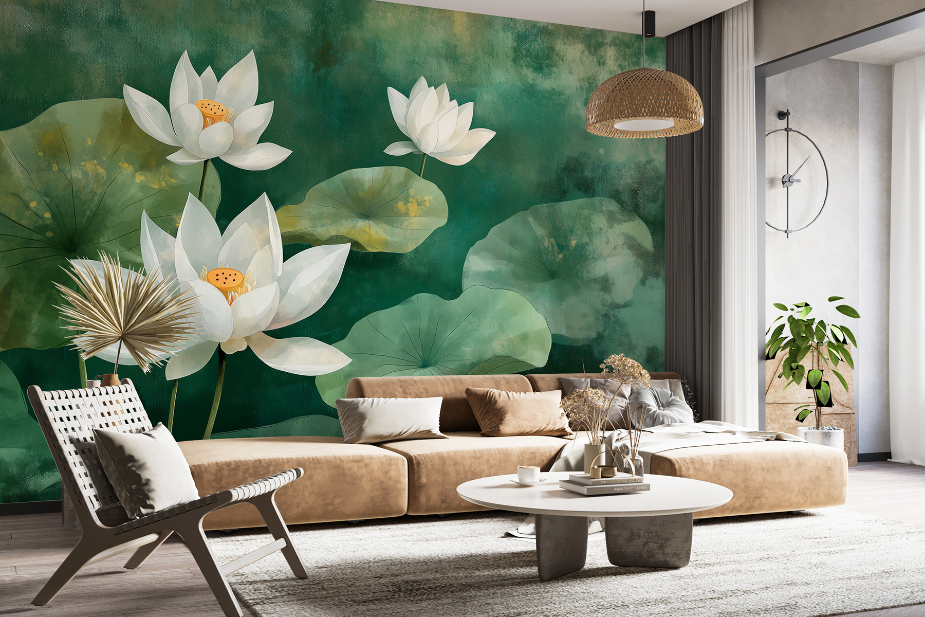 Verander elke muur in een dromerige ontsnapping met deze charmante muurschildering van witte bloemen en weelderige bladeren. Het is alsof je een serene tuin in huis haalt, zonder het vuil en de beestjes. Stel je voor: elke ochtend wakker worden omringd door de schoonheid van de natuur, klaar om aan de dag te beginnen. De zachte aquarel vibe voegt een kalmerend tintje toe, perfect voor een gezellig hoekje of een inspirerende werkplek. Vrienden zouden zelfs kunnen denken dat je een geheime tuin hebt. Of je nu koffie drinkt of tot rust komt na een lange dag, deze muurschildering hult je kamer in een rustgevende omhelzing. Stel je de complimenten eens voor!