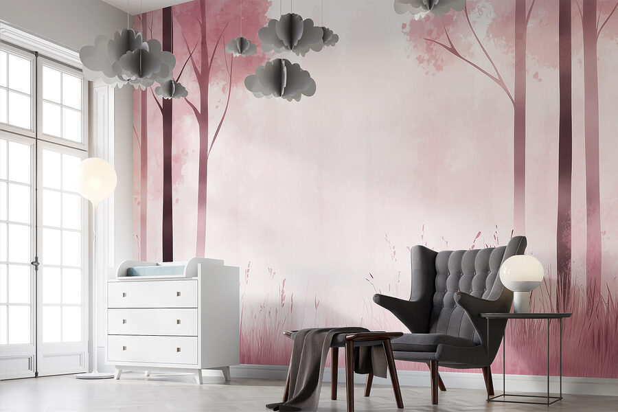 Stel je voor dat je elke dag een sprookje binnenstapt met de muurschildering “Mistig bos met roze bomen”. Het is net je eigen betoverende ontsnapping, gewoon in je woonkamer. De dromerige roze tinten en zachte mist creëren een sfeer die sereniteit uitstraalt, waardoor zelfs de meest hectische dagen aanvoelen als een wandeling in het park of misschien wel een magisch bos! Deze charmante muurschildering is perfect voor mensen die van de natuur houden en voegt een speelse maar rustgevende sfeer toe. Het is een kunstwerk dat zegt: “Hé, relax, je bent thuis.” Kruip lekker weg met een goed boek en laat de magie zich ontvouwen.