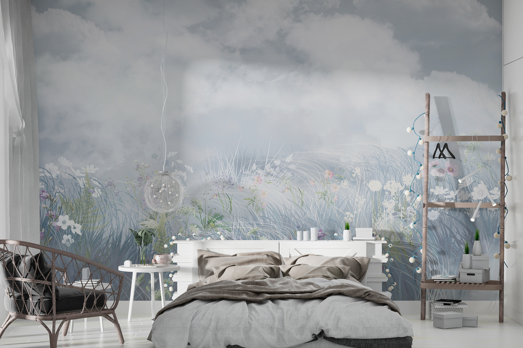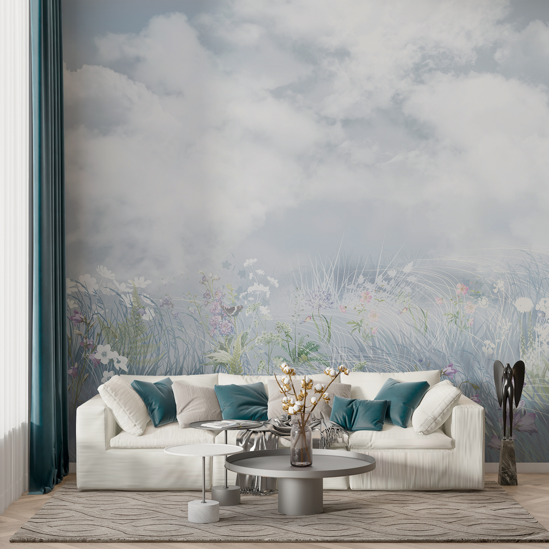 Stel je voor dat je elke dag wakker wordt met een veld vol bloemen, zonder dat je je knusse bed hoeft te verlaten. Deze muurschildering heeft wolken die zo pluizig zijn dat ze bijna van de muur af drijven, en wilde bloemen die voor je ogen lijken te bloeien. Het is als een aquareldroom op je muur. Perfect voor degenen die graag een dutje zouden doen in een weiland (zonder de mieren). Het heeft een magische manier om een kamer te openen, waardoor het rustig en luchtig aanvoelt. Een perfecte ontsnapping. Met thee in de hand vergeet je misschien wel dat je thuis bent. Zalig, nietwaar?