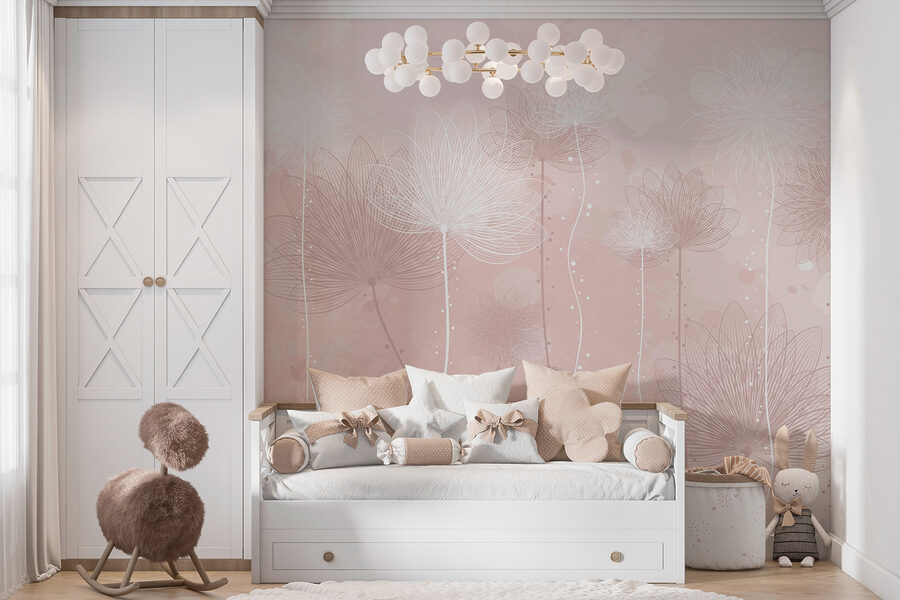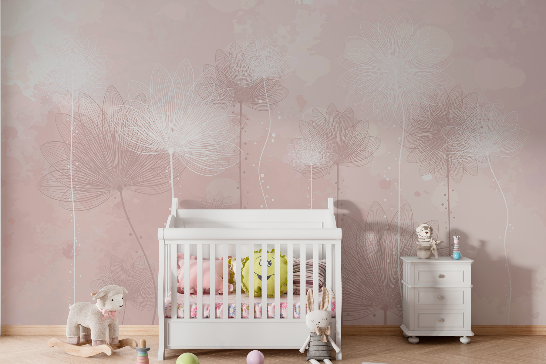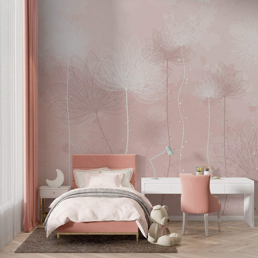 Stel je eens voor dat je een kamer binnenstapt waar elegantie op je muren pronkt – ja, dat is “Elegante bloemen dansen in blozen” voor jou. Deze muurschildering is als een zachte fluistering van de lente in aquarel, met paardenbloemen die klaar zijn om op te vliegen. Het is de dagdroom van een natuurliefhebber en de perfecte achtergrond voor luie zondagochtenden. Voel hoe de zachte tinten zich om je heen wikkelen als een knusse deken. Bezoekers vragen zich misschien af of je ergens een geheime tuin verborgen hebt. Voegt karakter, conversatie en een beetje eigenzinnigheid toe – je muren zullen je dankbaar zijn!