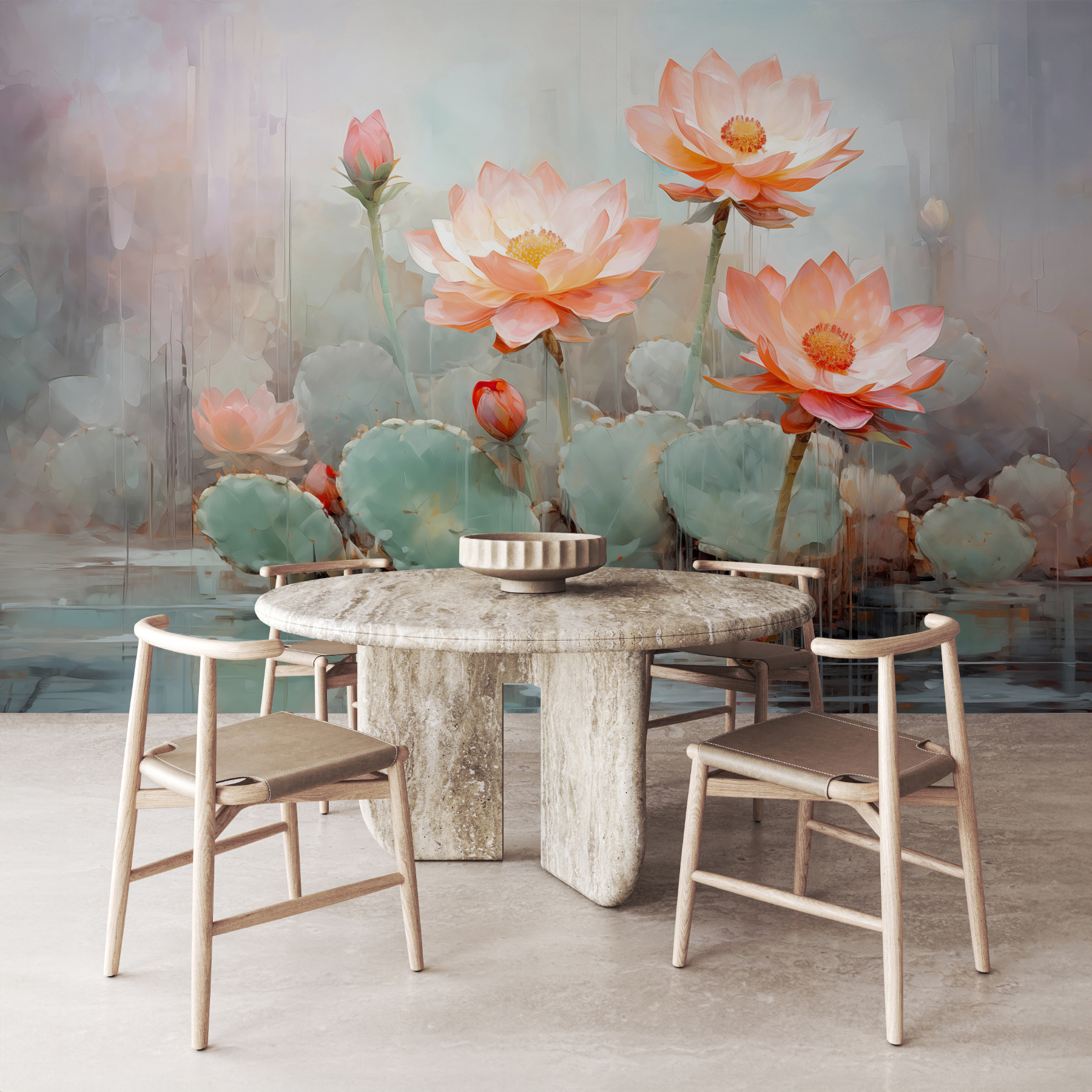 Stel je voor dat je wakker wordt met een zee van roze bloemen, zachtjes wiegend in een aquarel droomlandschap – er is magie op je muur! Deze muurschildering is niet alleen decor; het is een frisse wind, een vleugje natuur binnenshuis. Het weelderige groen en de zachte roze tinten versmelten met elkaar als een perfecte vergissing van een schilder, onmiddellijk rustgevend en toch heerlijk levendig. Het is alsof je buiten naar binnen haalt zonder de pollen (of de insecten). Fleur een ruimte op, stimuleer een gesprek of ontspan gewoon terwijl deze bloemen hun charme laten zien. Perfect voor wie zin heeft in een bloemenontsnapping.
