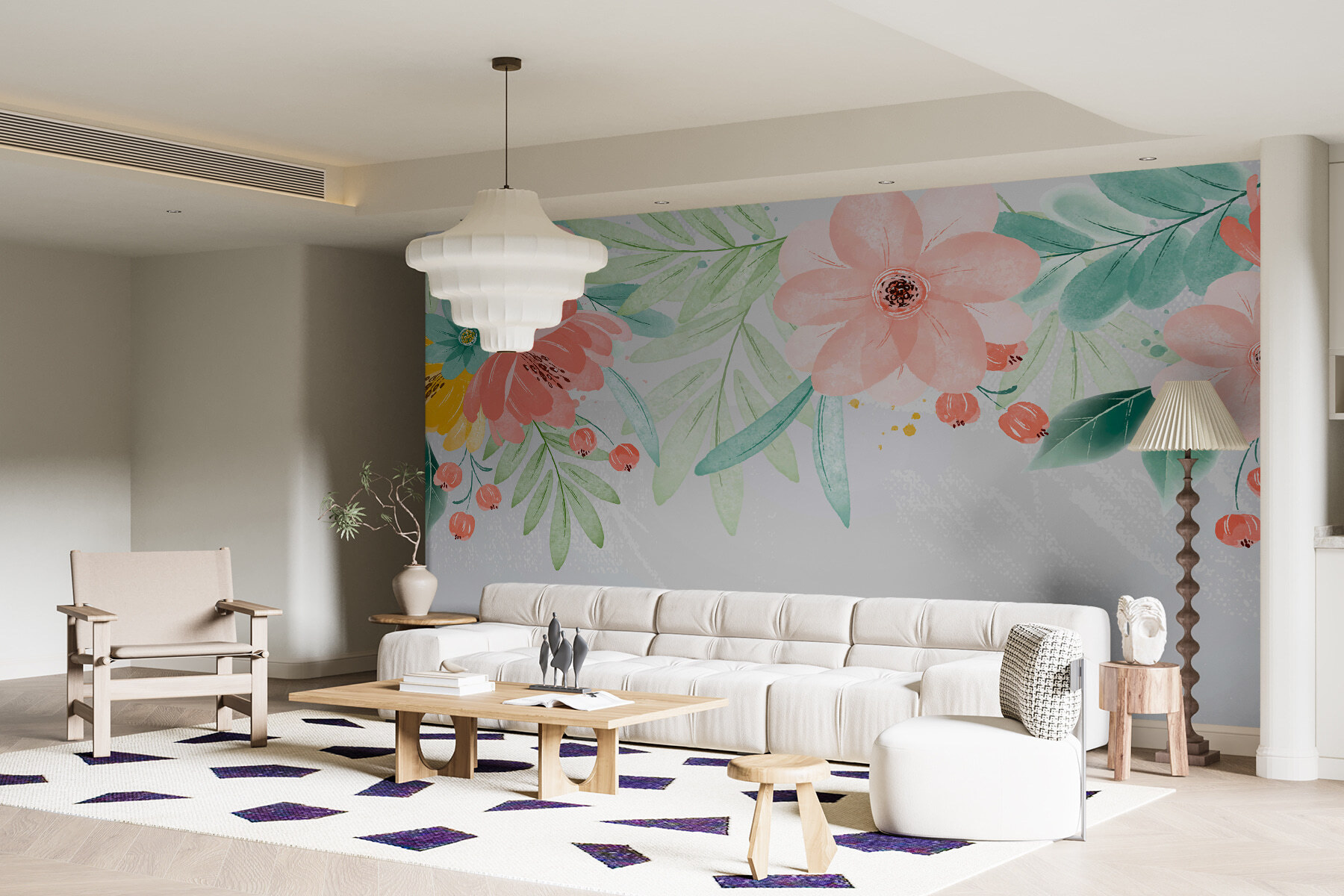 Stel je eens voor dat je een kamer binnenloopt waar de lente op de muren tot bloei is gekomen. Deze muurschildering, charmant getiteld “Bloeiende pastels dansen op canvas”, doet precies dat. Het is net een aquarel tuinfeest in je woonkamer. Zachte bloemblaadjes in dromerige kleuren wiegen zachtjes en voegen een vleugje vreugde toe aan je dag. Perfect voor mensen die willen dat hun ruimte aanvoelt als een zachte knuffel. Het is een vleugje eigenzinnigheid en een vleugje verrukking – ideaal voor iedereen die houdt van een unieke, vrolijke inrichting. Wie wil er nu geen bloemen die nooit verwelken?