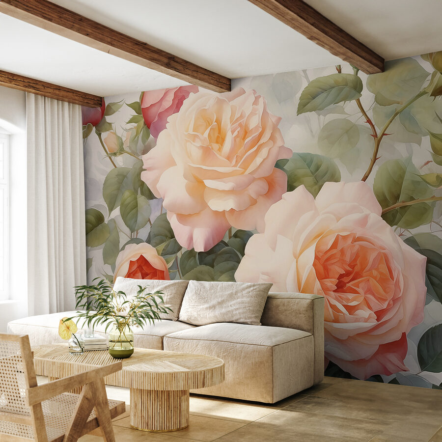 Tover elke ruimte om in een dromerige tuin met de muurschildering “Soft Pastels Bloom in Harmony”. Stel je voor dat je wakker wordt met een zee van zachte rozen, hun zachte tinten die als een warme knuffel over je muren spoelen. Deze muurschildering vult niet alleen een ruimte, maar nodigt je uit in een verhaal. Stel je voor dat je thee drinkt terwijl de kunst het zonlicht vangt en delicate schaduwen werpt die door de kamer dansen. Het is alsof de natuur naar binnen is gestapt en een knus hoekje heeft gecreëerd waar gedachten tot bloei kunnen komen. Perfect voor elke kamer die hunkert naar een vleugje romantiek. De grillige schoonheid van deze muurschildering zal vrienden laten zeggen, “Wat vrolijk!”. Ideaal voor wie gelooft dat een beetje charme alles kan veranderen.