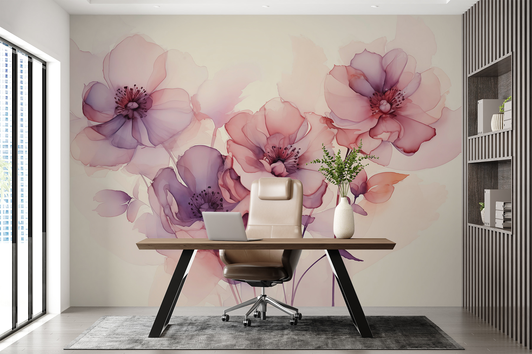 Stel je voor dat je een kamer binnenloopt en begroet wordt door een zacht gefluister van de charme van de natuur – maak kennis met “Blozende bloesems in subtiele tinten”. Deze muurschildering nodigt je uit in een zachte tuin van aquarelblaadjes die moeiteloos op je muren lijken te zweven. Het is als een knusse knuffel voor je kamer, die gewone hoeken verandert in een sereen toevluchtsoord. Vrienden zullen misschien denken dat je een sjieke decorateur hebt ingehuurd, maar hé, we weten allebei dat het gewoon deze magische bloemen zijn die hun ding doen. Perfect voor wie houdt van een vleugje natuur zonder al het water geven.