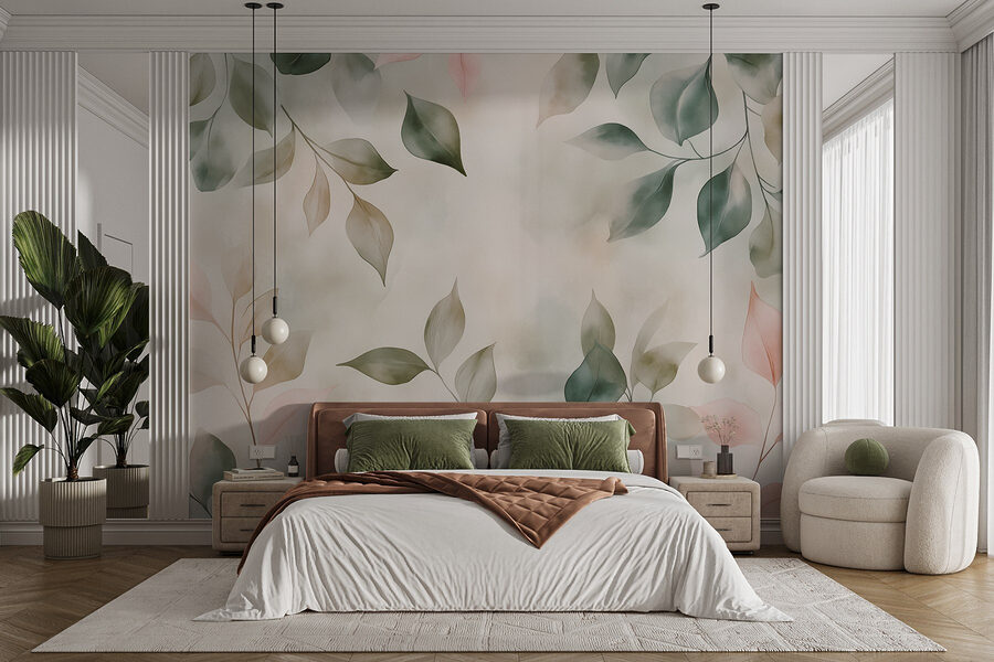 Verander elke kamer in een rustgevend toevluchtsoord met de muurschildering “Delicate Leaves in Soft Hues”. Stel je dit eens voor: als je je kamer binnenstapt, is het net alsof je een serene tuin binnenloopt, waar zachtgroene en zachtroze tinten je omringen. Deze muurschildering straalt rust uit, nodigt uit tot gezellige sferen en luie middagen met een boek. Stel je voor dat je vrienden ontvangt en dat ze de muurschildering bewonderen en je terloops vertelt hoe het jouw kamer doet aanvoelen als een vredig toevluchtsoord. Het is niet alleen decor; het is als een frisse wind voor je muren. Perfect voor natuurliefhebbers of iedereen die behoefte heeft aan een vleugje rust!