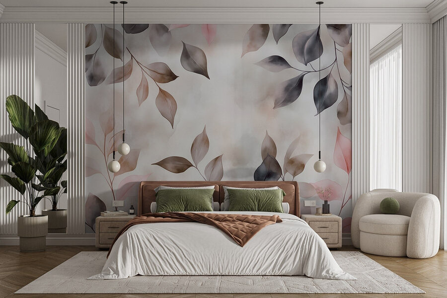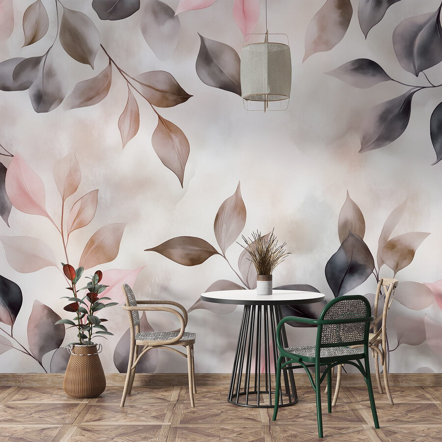 Verander elke kamer in een gezellig toevluchtsoord met “Delicate Leaves in Soft Hues”. Deze muurschildering brengt de schoonheid van de natuur binnenshuis en hult je ruimte in rustgevende pasteltinten en subtiele schaduwen. Stel je voor dat je een kopje thee drinkt terwijl je je koestert in de zachte sfeer die het creëert. Het is alsof je een serene tuinmuur hebt – zonder het tuinwerk! De aquarelstijl voegt een dromerig tintje toe, perfect om bij weg te dromen of om even tot rust te komen. Het is ook een geweldige gespreksstarter – je gasten zullen zich misschien afvragen welke kleur die mysterieuze bladeren hebben! Kortom, de charme van de natuur binnen handbereik, klaar om elke muur op te vrolijken.