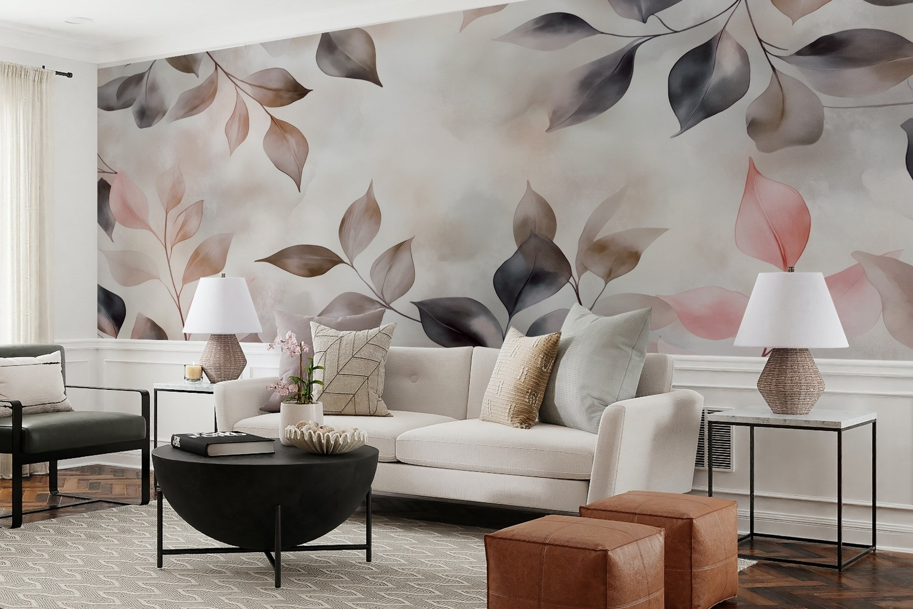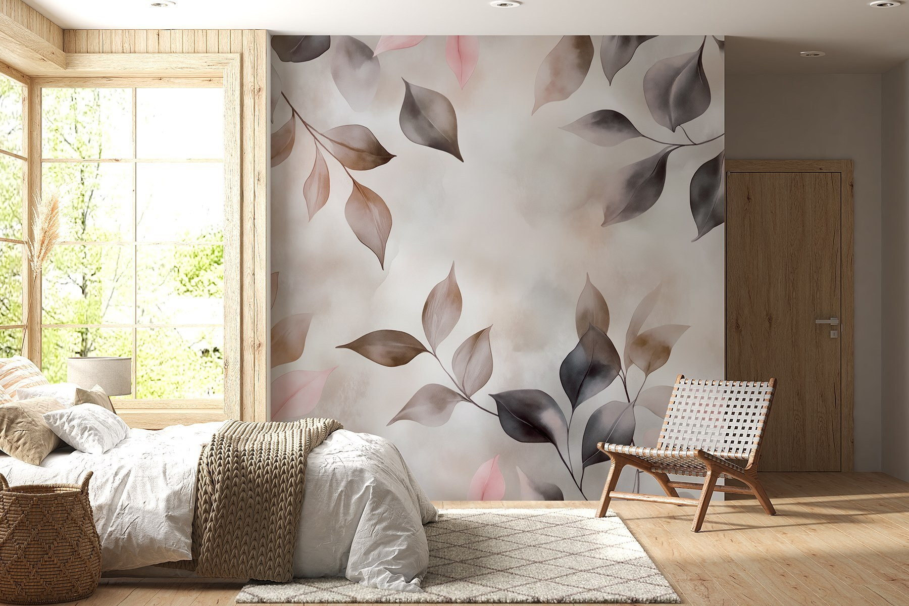 Verander elke kamer in een gezellig toevluchtsoord met “Delicate Leaves in Soft Hues”. Deze muurschildering brengt de schoonheid van de natuur binnenshuis en hult je ruimte in rustgevende pasteltinten en subtiele schaduwen. Stel je voor dat je een kopje thee drinkt terwijl je je koestert in de zachte sfeer die het creëert. Het is alsof je een serene tuinmuur hebt – zonder het tuinwerk! De aquarelstijl voegt een dromerig tintje toe, perfect om bij weg te dromen of om even tot rust te komen. Het is ook een geweldige gespreksstarter – je gasten zullen zich misschien afvragen welke kleur die mysterieuze bladeren hebben! Kortom, de charme van de natuur binnen handbereik, klaar om elke muur op te vrolijken.