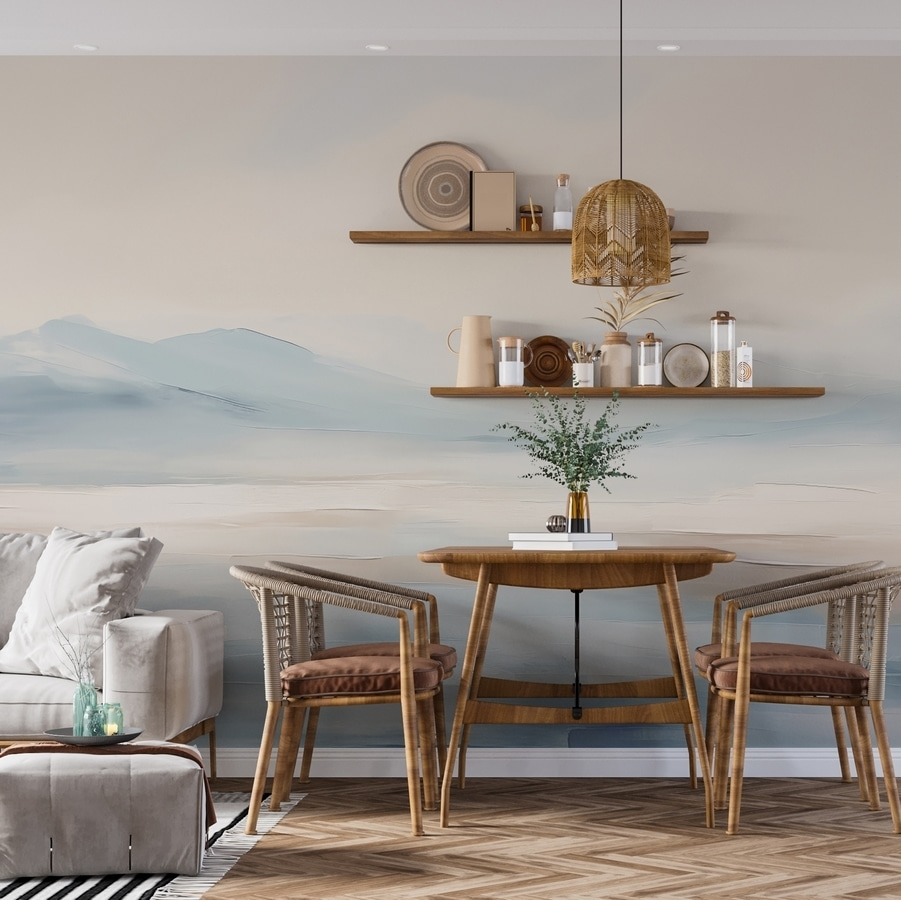 Verander je ruimte in een serene ontsnapping met deze dromerige muurschildering, “Fotobehang Painting of a Landscape”. Stel je die zachte golven voor die tegen de kust kabbelen terwijl zachte aquareltinten moeiteloos in elkaar overvloeien. Het is net een minivakantie met elke blik! Stel je voor dat je aan je koffie nipt terwijl het ochtendlicht over die rustgevende blauwe en groene tinten danst – dat voelt gewoon goed, nietwaar? Perfect voor gezellige woonkamers of rustige slaapkamers, het brengt een stukje zee-kalmte direct aan je muren. Wie wil er nu niet tot rust komen in zo’n rustige sfeer? Of je nu vrienden ontvangt of geniet van een rustig avondje uit, deze muurschildering voegt dat speciale tintje toe waardoor elke ruimte uniek van jou wordt. Dus ga je gang, laat die zorgen maar wegspoelen!