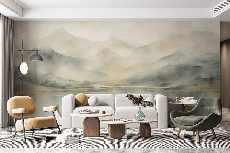 Verander elke muur in een serene ontsnapping met deze prachtige muurschildering van water en bergen in de verte. Stel je voor dat je staart naar zachte tinten die in elkaar overvloeien en een kalm, bijna dromerig tafereel vormen. Het is net een miniatuurvakantie in je woonkamer. Perfect om na een lange dag even weg te dromen, of om te beginnen met dagdromen over wandelavonturen. De zachte streken roepen gevoelens van rust op – ideaal voor een knusse leeshoek of zelfs voor een levendig etentje. Stel je de gesprekken eens voor terwijl deze schoonheid de perfecte achtergrond vormt. Het is niet alleen decor; het is een uitnodiging om tot rust te komen.