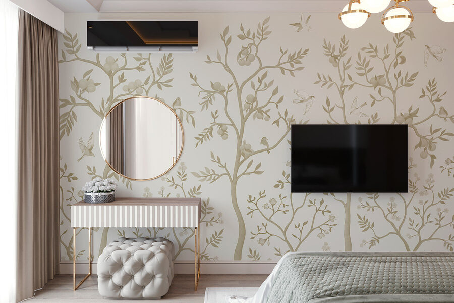 Transformeer elke ruimte met deze betoverende muurschildering met delicate vogels en sierlijke bomen, perfect om een stukje natuur in huis te halen. Stel je voor dat je ‘s ochtends aan je koffie nipt terwijl de vogels lijken te kwetteren, hun gefluister vermengend met de zachte tinten van een rustige tuin. Deze muurschildering kleedt niet alleen je muren aan, maar nodigt ook uit tot een rustige sfeer, waardoor zelfs de meest alledaagse kamers aanvoelen als een vredig toevluchtsoord. Als huizen persoonlijkheden hadden, zou dit de zachtaardige vriend zijn die je altijd op je gemak weet te stellen. Het is alsof je een serene natuurwandeling in je woonkamer maakt – zonder de insecten! Of het nu in een gezellig hoekje is of in een lichte gang, het zal zeker een gespreksstarter zijn. Dus, laat die muren zingen!