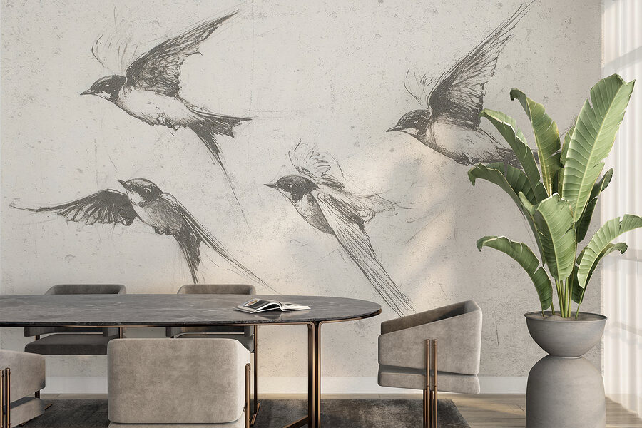 Stel je eens voor dat je een ruimte binnenloopt waar de vogels zo van de muur lijken te fladderen. Deze aquarel muurschildering, “Groep vliegende vogels”, brengt dat grillige tintje in elke kamer. Met zachte tinten en sierlijke streken geeft het een gevoel van vrijheid, zoals een zacht briesje dat voorbij waait. Perfect voor een gezellig hoekje of een levendige entree, het voelt alsof de natuur je huis binnensluipt. Stel je voor dat je thee drinkt of een boek leest terwijl die gevederde vrienden stilletjes voorbij zweven. Het is niet alleen decor, het is een kleine ontsnapping, een herinnering dat schoonheid overal om je heen is, wachtend om opgemerkt te worden.