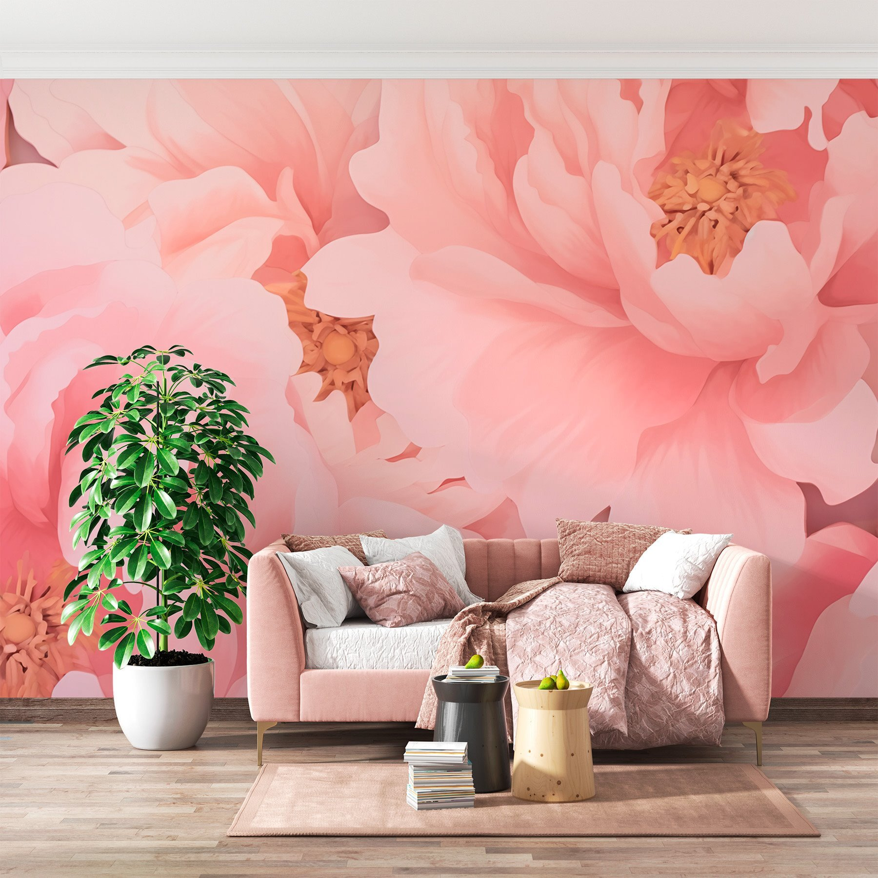 Transformeer elke kamer met deze prachtige muurschildering met delicate bloemen in zachtroze tinten. Stel je voor dat je de ruimte binnenstapt en je je meteen opgebeurd voelt, als een warme knuffel op een lentedag. Deze zachte pioenrozen en rozen zijn niet zomaar bloemen; ze zijn een viering van schoonheid en de natuur. Perfect om een sereen hoekje te creëren waar je thee kunt drinken en kunt dagdromen. Stel je een gezellig leeshoekje voor, waar elke blik op deze bloemen een glimlach op je gezicht tovert. Het is alsof je een tuin hebt zonder al dat gedoe – alleen maar levendige vibraties en een vleugje kleur om elke dag op te fleuren.