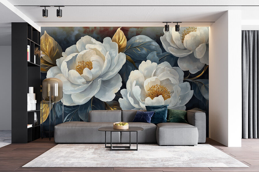 Verander je ruimte in een rustige tuin met deze prachtige muurschildering, “Delicate Blooms on a Dark Backdrop”. Stel je voor dat je een kamer binnenstapt die gekust wordt door zachte pioenrozen die geheimen van sereniteit lijken te fluisteren. Het contrast van rijke, donkere tinten laat die crèmekleurige bloemen eruit springen alsof ze zeggen: “Kijk naar mij!”. Het is perfect om een vleugje elegantie toe te voegen, of het nu de woonkamer is of dat knusse hoekje waar je ‘s ochtends aan je koffie nipt (of een middagsnack – geen oordeel hier!). Elk bloemblaadje nodigt uit tot rust en laat je dagdromen over een wandeling door een bloemenparadijs. Wie wil er nu geen vleugje natuur in huis? Het is een gespreksstarter, een dagopwekker en een totale sfeerversterker in één.