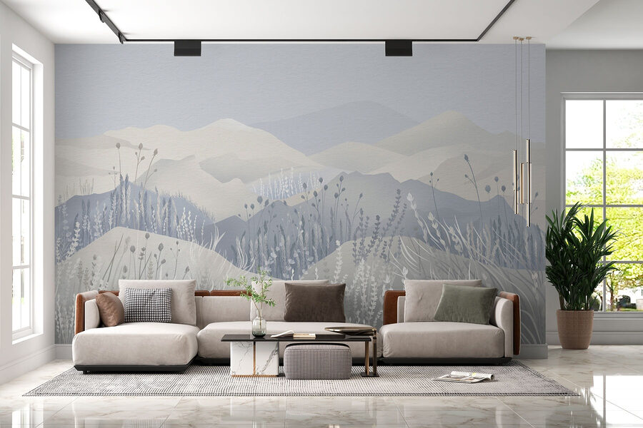 Tover je ruimte om in een sereen toevluchtsoord met deze prachtige muurschildering van glooiende bergen en zacht gras. Stel je voor dat je wakker wordt met deze vredige tinten die je kamer omringen en een gevoel van rust oproepen, net als een ochtendwandeling in de natuur. De aquarelstijl geeft het een artistiek tintje, bijna als een gezellige dagdroom aan je muur. Perfect voor een woonkamer of slaapkamer, het nodigt je uit om even stil te staan en adem te halen. Bovendien is het een geweldige gespreksstarter – kijk vrienden je onberispelijke smaak bewonderen! Stel je voor dat je koffie drinkt in een kamer waar de bergen zich op een steenworp afstand bevinden. Deze muurschildering is alsof je thuis een stukje paradijs hebt.