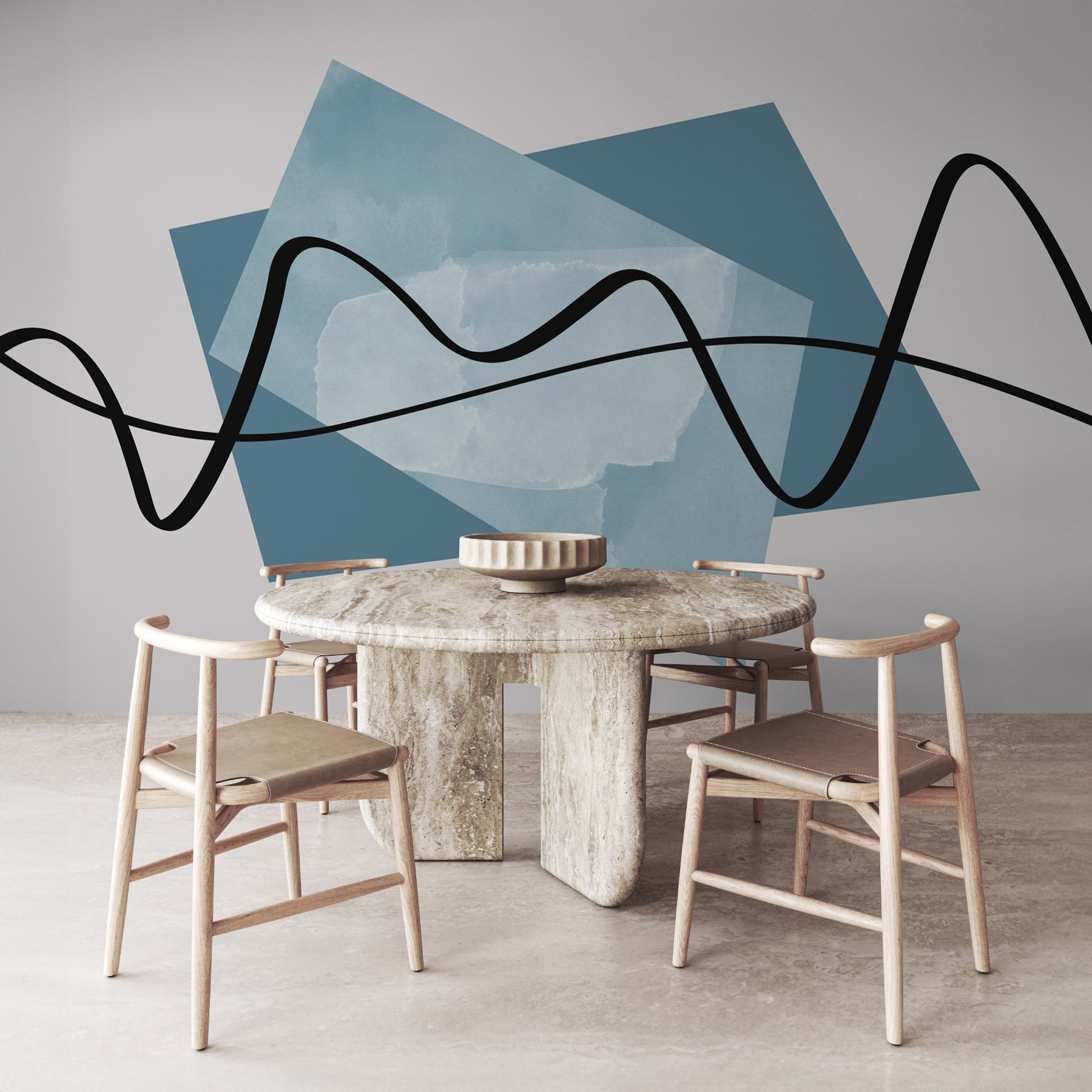 Verander een saaie muur in een conversatiestarter met deze opvallende muurschildering. De krachtige zwarte lijn danst over een rustgevende blauwe rechthoek en creëert een intrigerende sfeer die je naar binnen trekt. Stel je een gezellig leeshoekje voor, waar je favoriete roman perfect samengaat met dit moderne kunstwerk. Het is alsof je een stukje hemel in je kamer hebt, die je een beetje rust influistert. Perfect voor een woonkamer, kantoor of speelse kinderkamer, het voegt persoonlijkheid toe zonder om aandacht te schreeuwen. Wie houdt er niet van een vleugje artistieke flair die precies goed voelt?