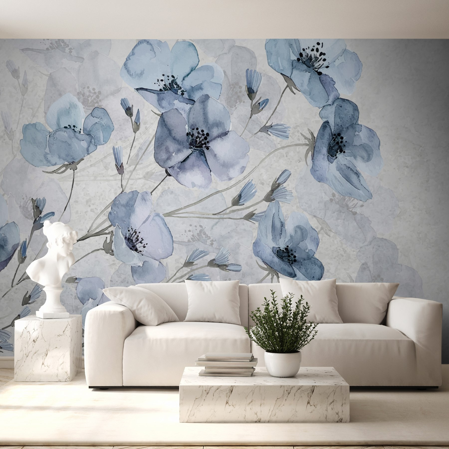 Stel je eens voor dat je een kamer binnenstapt waar tere bloemen zachtjes op de muren zweven en zachte verhalen over de schoonheid van de natuur fluisteren. “Delicate bloemen in zachte tinten” is als een serene dagdroom geschilderd in waterverf, die iedereen die binnenkomt uitnodigt om even stil te staan en adem te halen. De zachte blauwtinten en subtiele grijstinten zorgen voor een kalme sfeer – perfect om thee te drinken en na te denken over de mysteries van het leven. Het is moeilijk om niet te glimlachen om hoe deze bloemen lijken te dansen, zelfs in stilte. Transformeer een ruimte van gewoon naar buitengewoon, haal buiten naar binnen en kijk hoe gasten zich thuis voelen in deze bloemenomhelzing. Een beetje kunst kan inderdaad alles veranderen!