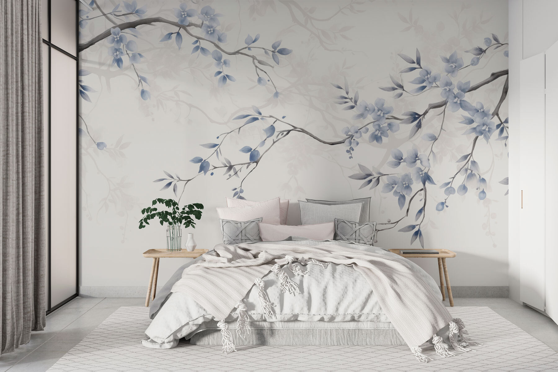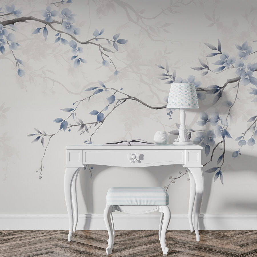 Transformeer je ruimte met deze betoverende muurschildering, “Tak met blauwe bloemen en bladeren”. Stel je voor dat je elke dag een serene Japanse tuin binnenstapt – rustig, vredig en een beetje magisch. De zachte aquarelbloemen wiegen zachtjes alsof ze geheimen van de natuur fluisteren. Deze muurschildering is perfect voor een gezellige leeshoek of een lichte keukenhoek en nodigt uit tot heerlijk dagdromen. Stel je een kopje koffie in de ochtend voor, omringd door deze prachtige blauwtinten. Het is alsof je een frisse wind binnenlaat, waardoor elke blik een kleine ontsnapping wordt. Voeg het toe aan je huis en laat de schoonheid van de natuur je eraan herinneren om even stil te staan en de kleine dingen te waarderen.